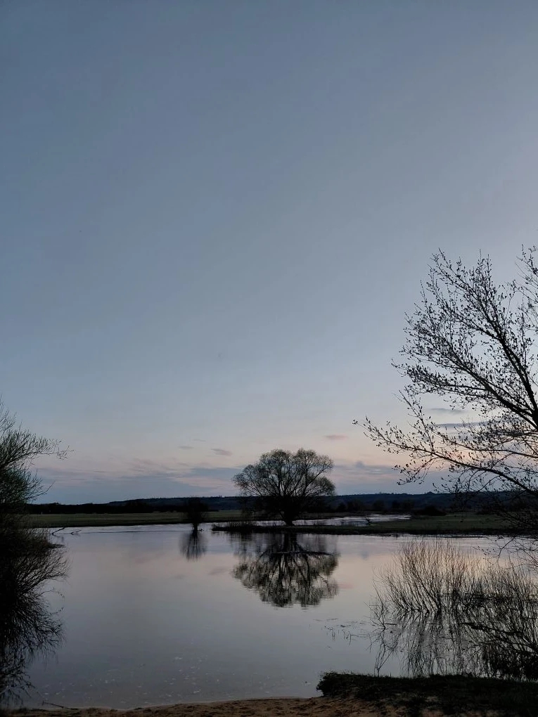 Был пять дней на даче, разлился не на всю силу, на половину поймы только, может ещё поднимется, но наврядли. Но вода пошла в озеро у дома, теперь не озеро, а речка.