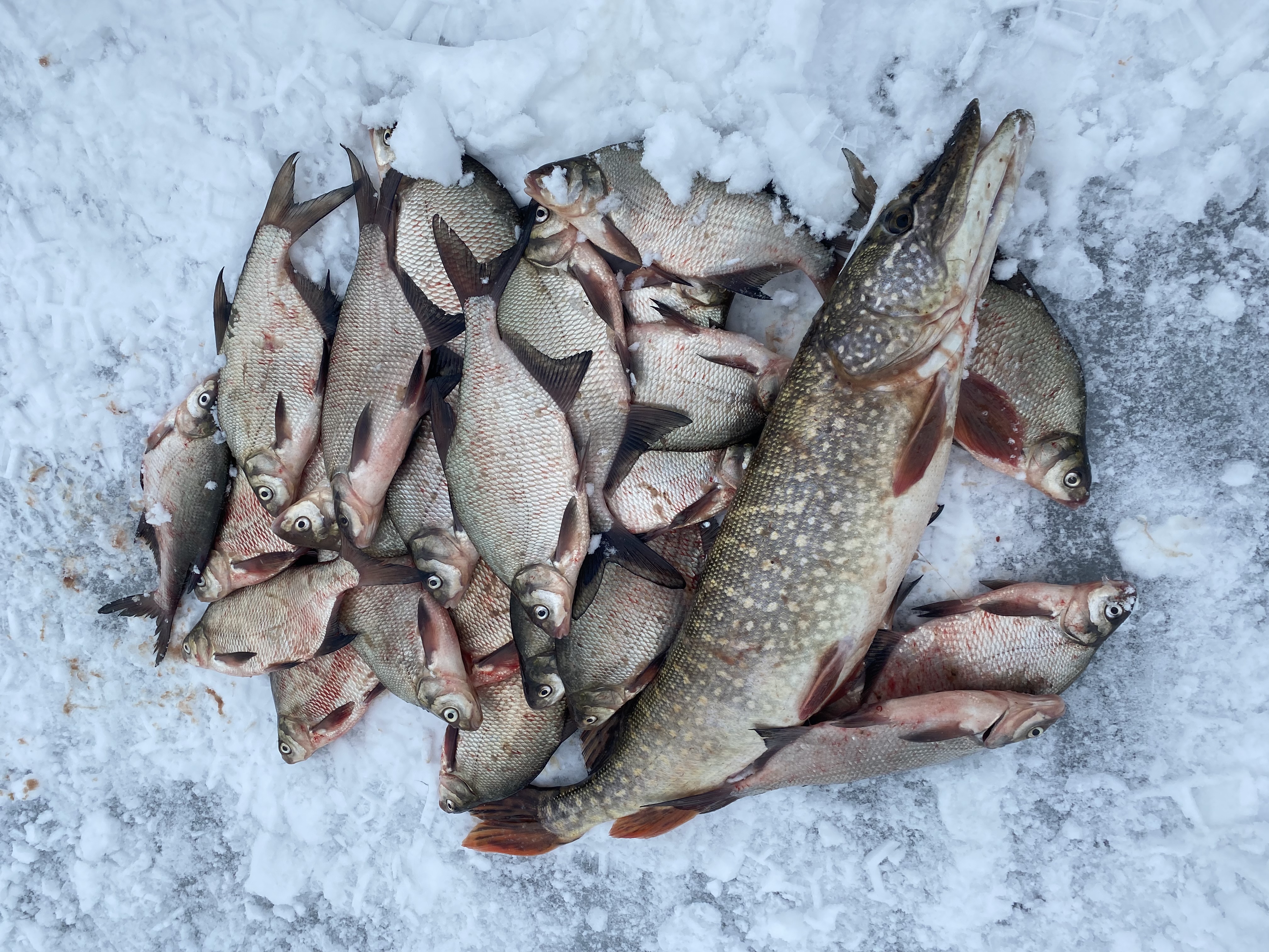 Половил плоского . На точку поставил его сразу и в количестве . В этом хаосе и щучка на 3800 мотыля всосала .