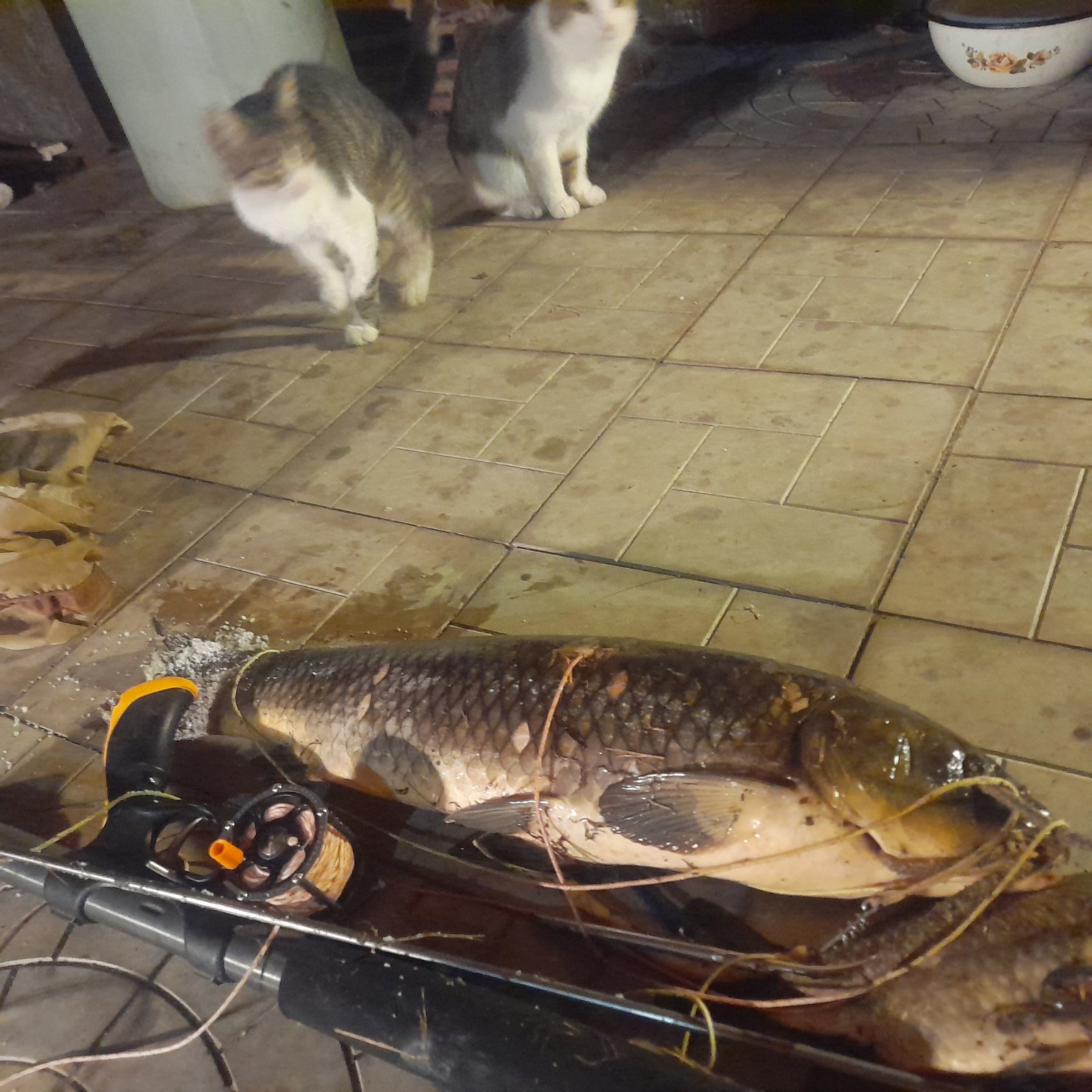 Сомика ближе к опорам взял. Щуки и карася там видел довольно много, но - только там. Большую часть пути никаких рыб не видно было, даже мелочи. И у Брежки, в самих лопухах не плавал, а на выходе из затона встретил стайку подлещика и пару хороших лещей. Ещё, когда снарягу собирал, заметил, что плоскодонка стоит в лопухах недалеко от берега, а с неё ловят чего-то. Подумалось, раз 4 часа стоит там, значит, есть, что ловить. Вот бы там нырнуть, когда никого не будет. Оказалось - уже. Когда проезжал мимо, увидел, как метрах в пяти от лодки стоит чувак в гидрокостюме по пояс в воде, а рядом ещё сидят 3 удочника. И всё это буквально на пятачке 10 на 10 метров. Постеснялся спросить, или там рыбная золотая жила, или потеряли что-то и ищут. Да и показалось, что как-то косо все они на меня посмотрели.