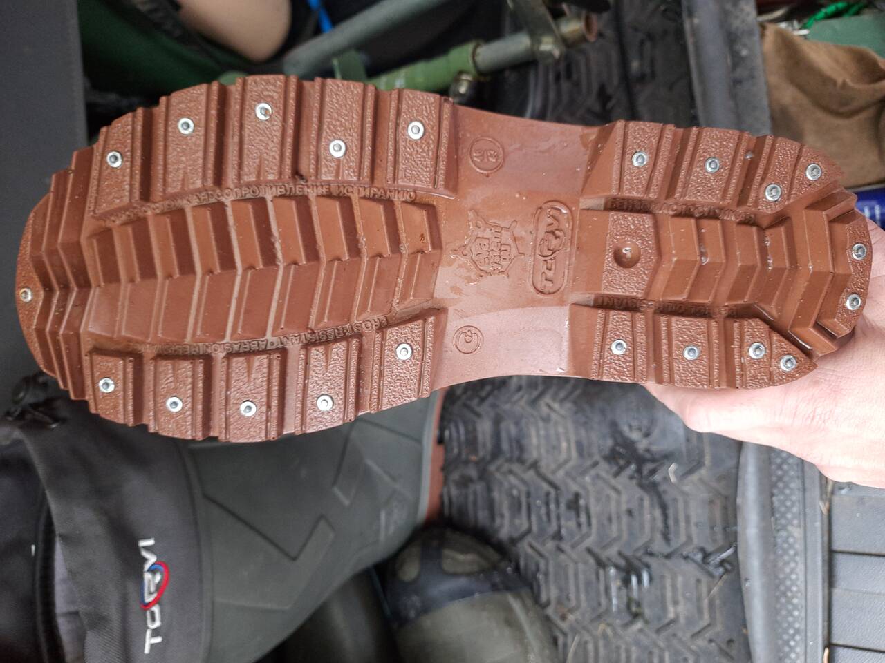 Купил новые сапоги с полиуретановой подошвой, шипованые. Все хорошо, пара рыбалок на ура. Но сегодняшняя, когда лед гладкий и на нем вода, показала, что10 заводских шипов маловато. Заехал в шиномонтажку. Ребята шипанули. Уже опробовал, теперь норм!