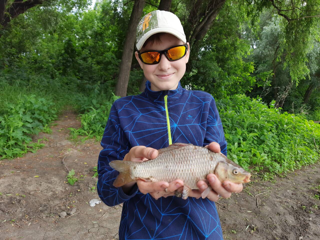 С утра с сыном перед поездкой на Волгу решили вспомнить, как ловить на фидер. Рыба оказалась капризнючая. Все поклевки только на навозного червя. Опарыша под разными соусами никто даже не понюхал. В улове 4 карася, полтора десятка хороших бирюков, 3 густерки и сазанчик или карпенок, который после фото был немедленно амнистирован.