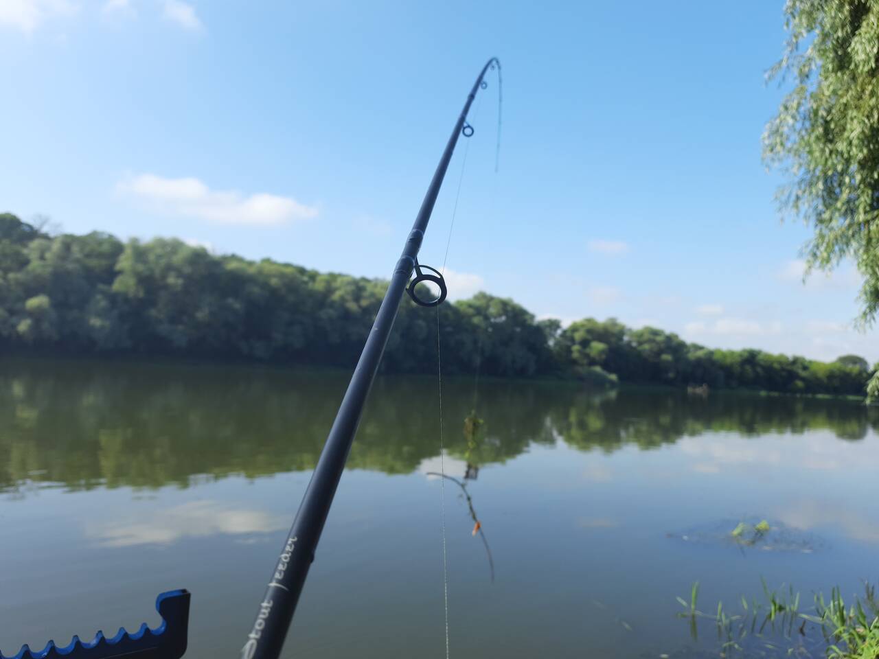 Поэтому утром все будильники проигнорировал. разбудили меня  соседи в 7-00 и заставили ловить рыбу. Но нормально рыбачить не давали плывущие кусты травы. Постоянные срывы фидера со стойки, перезабросы через каждые пару минут. Терпения у меня хватило ровно до 9-00.