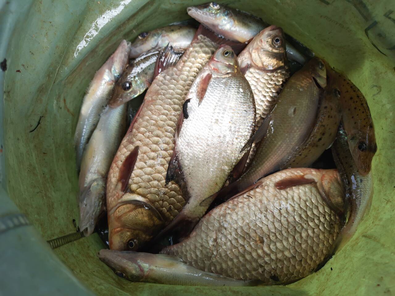 густеры, пара неплохих плотвиц, "сабелька" граммов 350 (опарик с пенопластом) и тройка карасей (бирюков не считал).