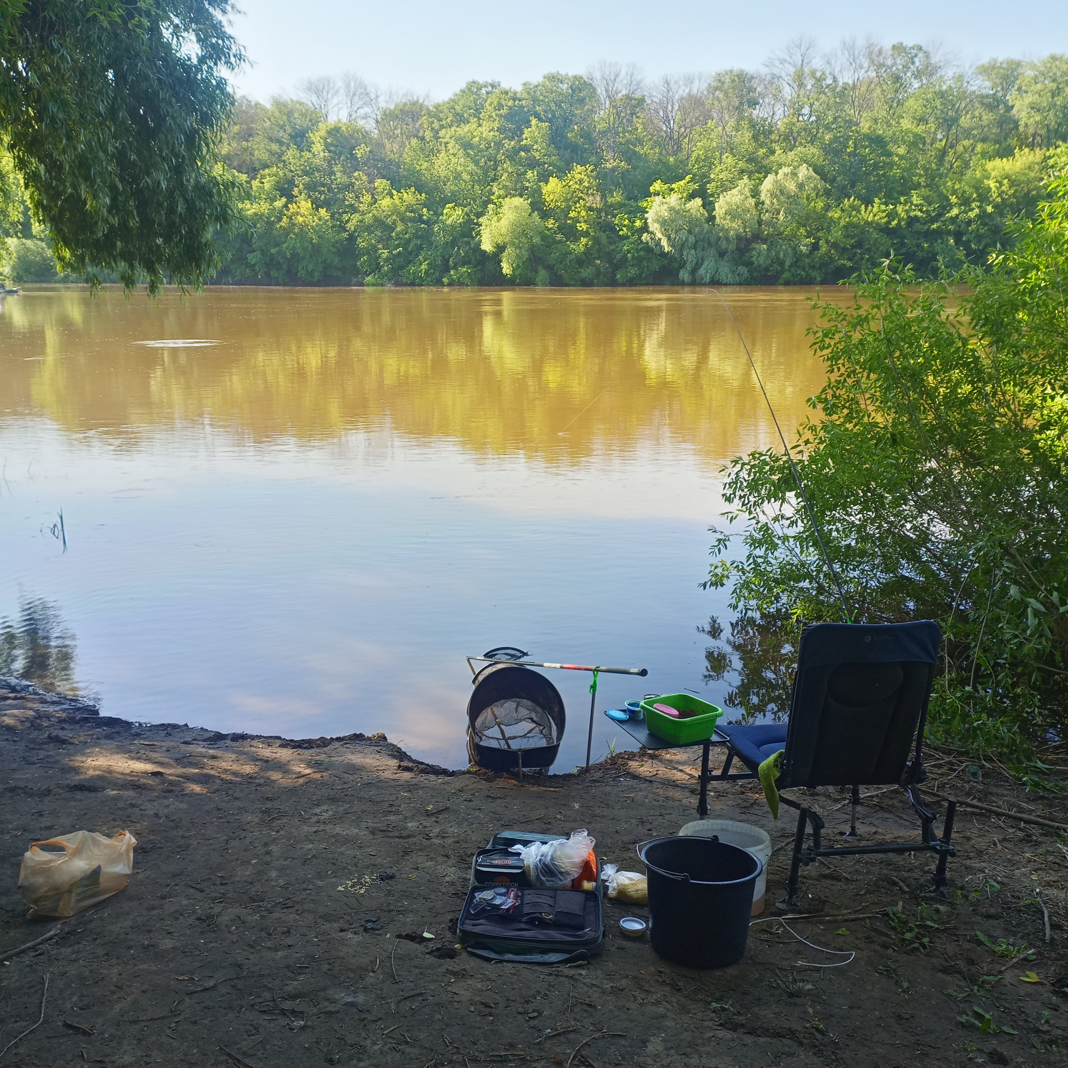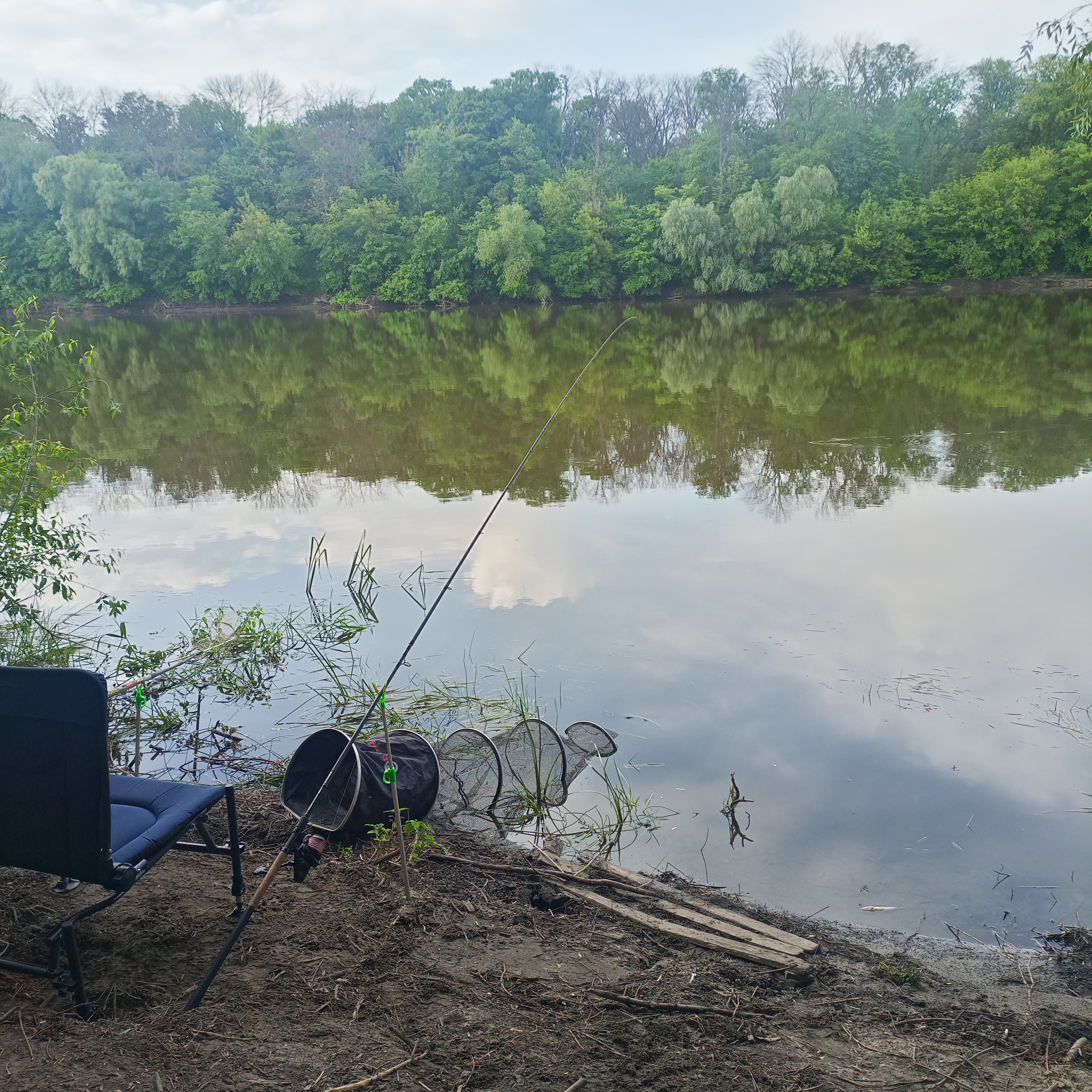 К моему сожалению, фидерный сезон на любимой реке получилось открыть непростительно поздно. Сегодня. Это на целый месяц позднее обычного!!!   Более того и на реку приехал поздно, в 5.30.....естественно практически все  хорошие места были заняты. Большинство к стати с ночи.  Ну кое как нашел местечко, разложился, не спеша замешался, пяток закормочных кормушек....И вот на точку отправилась первая боевая кормушка 80гр на патерностере с поводком 0.12 70 см и парой боевых белых червячков...... И мой посыл обитатели подводного мира оценили сразу. Уже через пару минут последовал классический "отстрел" и мой старичок "Земекс" весело заплясал на стойке под утренние трели местных соловьев! Есть!!!! Первый в этом сезоне карасик отправляется в садок.Хоть поздно,но... Фидерный  Донской сезон открыт.Ура!  Потом,практически сразу ловлю еще трех карасевичей...И...... Клев нгеожиданнол выключают. При чем выключают совсем. На протяжении почти двух часов путем экспериментов удается вытащитьт лишь пару подлещиков,лупача и плотву. Тем не менее перезабрасываю снасть через каждые 5 минут, дабы кормовое пятно продолжало  быть активным. И  вот,когда тучки рассеялись и выглянуло солнце, начался долгожданный клев. Карась встал на точку плотной стеной. Поклевки были регулярными и мощными и продолжались до самого отьезда. Домой собрался в 14.00,хотя карась продолжал попытки утащить мой фидер в мутные воды великой реки. Хватит.Хорошего понемногу. И так удалось наковырят ь порядка 40 шт.Вес от 200 до 800 гр. В прилове подлещики, плотва,густера и лупачи. В общем и целом сезон Донских рыбалок считаю очень даже удачно открытым! Наловился, надышался, наслушался от души трели соловья...Правда обгорел очень сильно.Но это стоило того,поверьте))). Ну и по традиции, всем дочитавшим мой скромный отчет желаю богатырского здоровья, мокрых садков и мирного неба над головой! До встречи,пока!!!