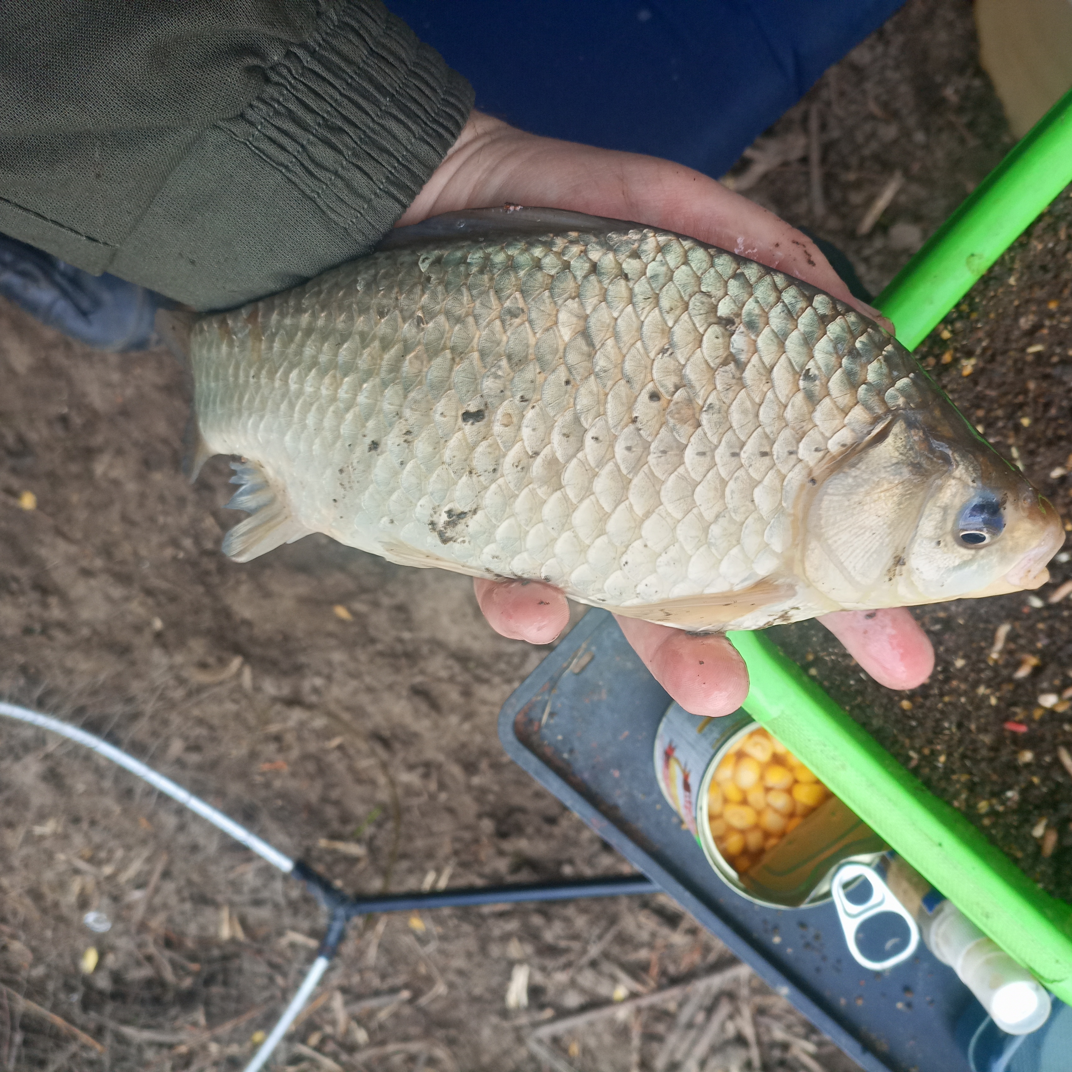 Сразу с первыми проблесками рассвета начинаю ловить в темпе 60-75, но рыбка не хочет отзываться и только в районе шести часов начинаются первые поклёвки. Были пойманы три небольшие плотвички и неплохая густерка. Затем небольшое затишье, и вот отчётливый отстрел кивера и карась граммов 800 в подсадке . Позарился на семафор из трёх опариков. Следом поклёвка -. плотва, а точнее Плотвень в 300 грамм, ещё одну такую же сливаю у подсака, двух ее сестер паркую в ведро. Опять небольшое затишье и поклёвка карасевича такого же размера как и первый. Ветер ближе к обеду подстих, с ним затих и клёв. Пора и ко двору. Такой вот получился выезд.