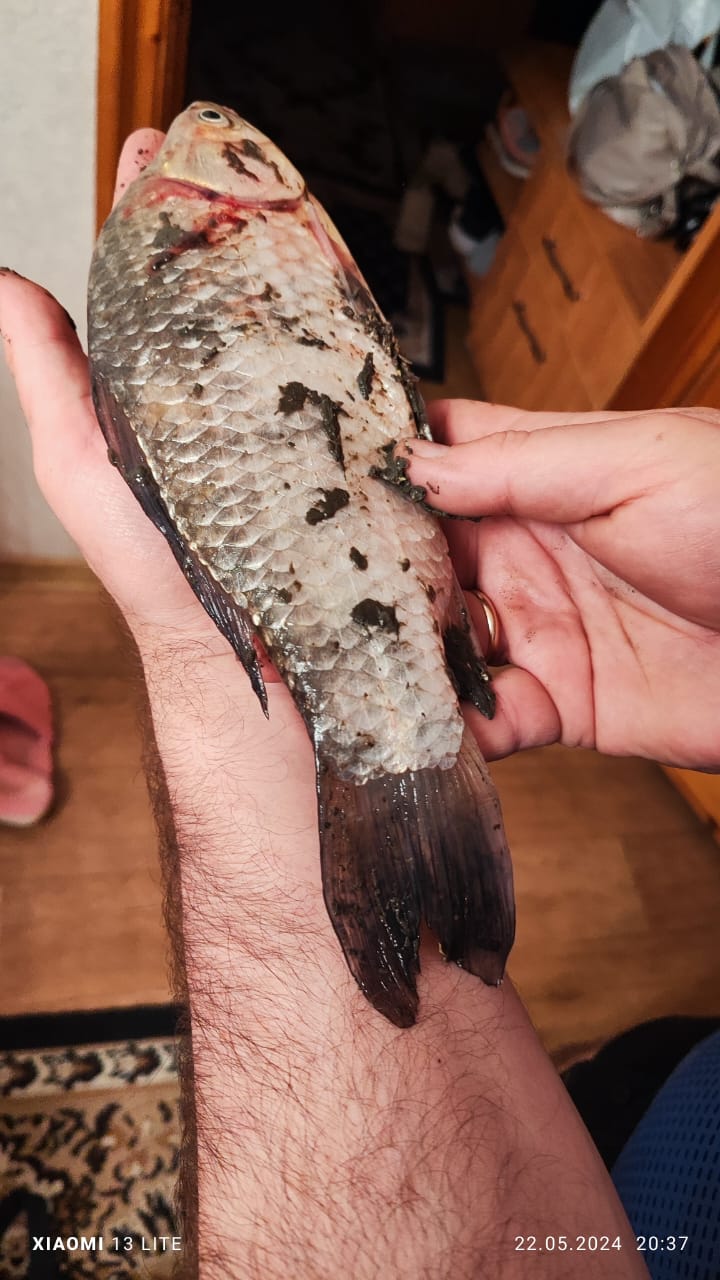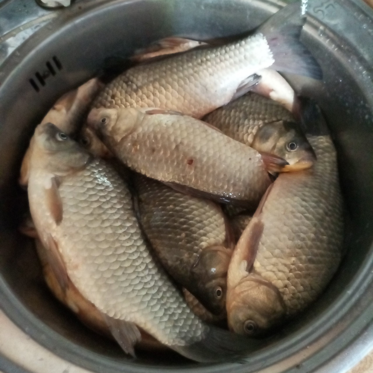 С утра карась на полчаса чуть шевельнулся и затих.  Правда, карась приятный: в 7 шт.  4кг.