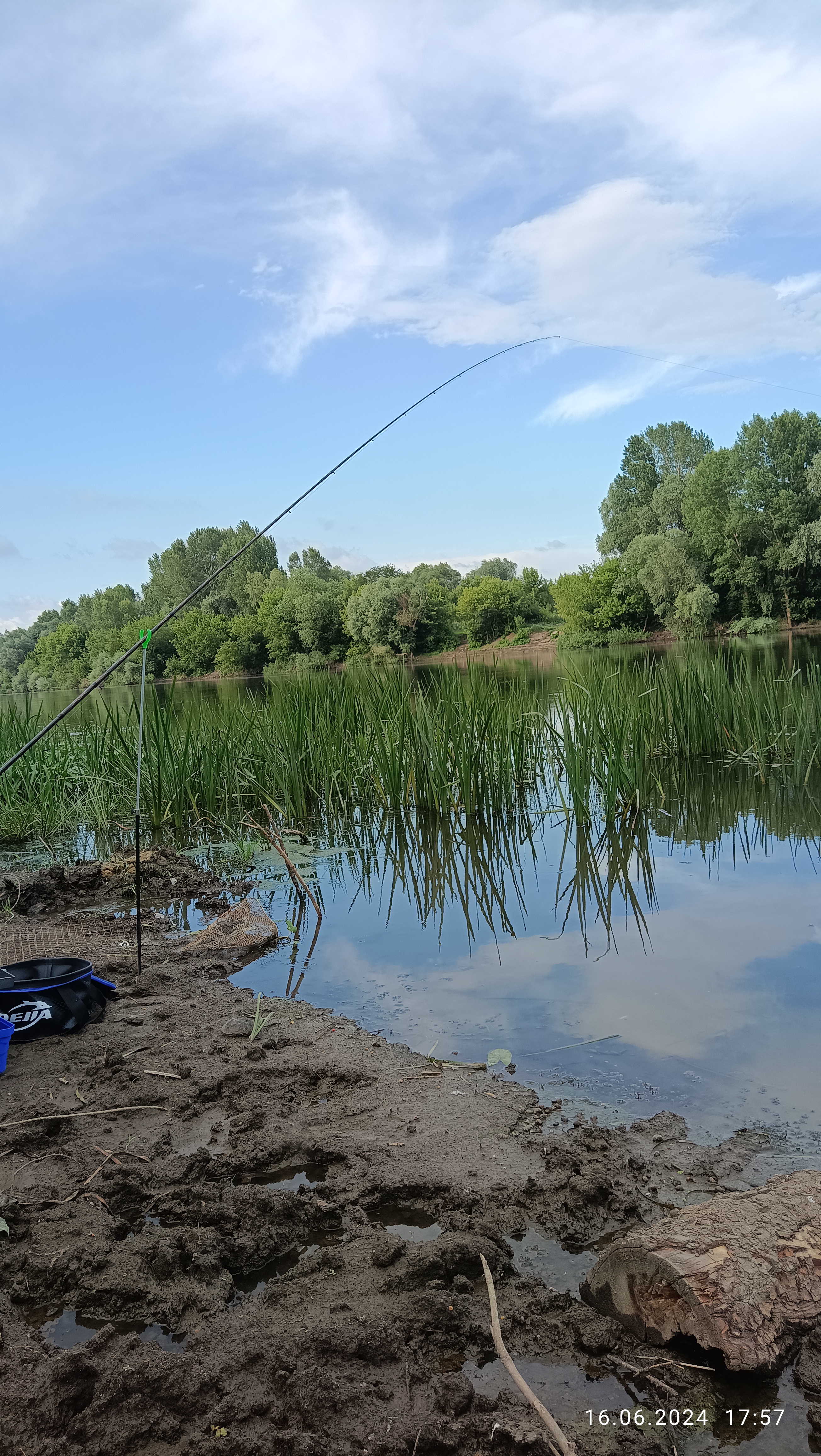 После дождика с обеда решил поймать пару карасей на сковородку...Помотавшись по домашним делам прибыл на берег в около трёх дня,думал место не найду,заехал на место форумки и остался там,народу почти ни кого,напротив один рыбак на весь берег и по соседству один в приделах 100 м.