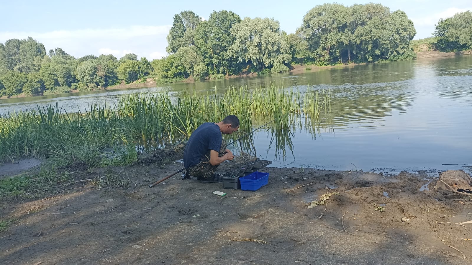 Километры наматывать уже не сильно хочется, поэтому закупился пескарями, взял парочку фидеров и отправился на Дон, в район понтонной переправы, где есть приличные глубины и перспективные коряги у берега. Поскольку передвигался на вёслах, большую акваторию решил не охватывать, а сосредоточился на глубинах в районе 5 метров. Тактику избрал саму незатейливую: заброс метров на 20 вниз по течению и плавное подтаскивание к лодке с лёгкой подджиговкой на паузах. Ловил на одинарный крючок и леску 0,2 мм.