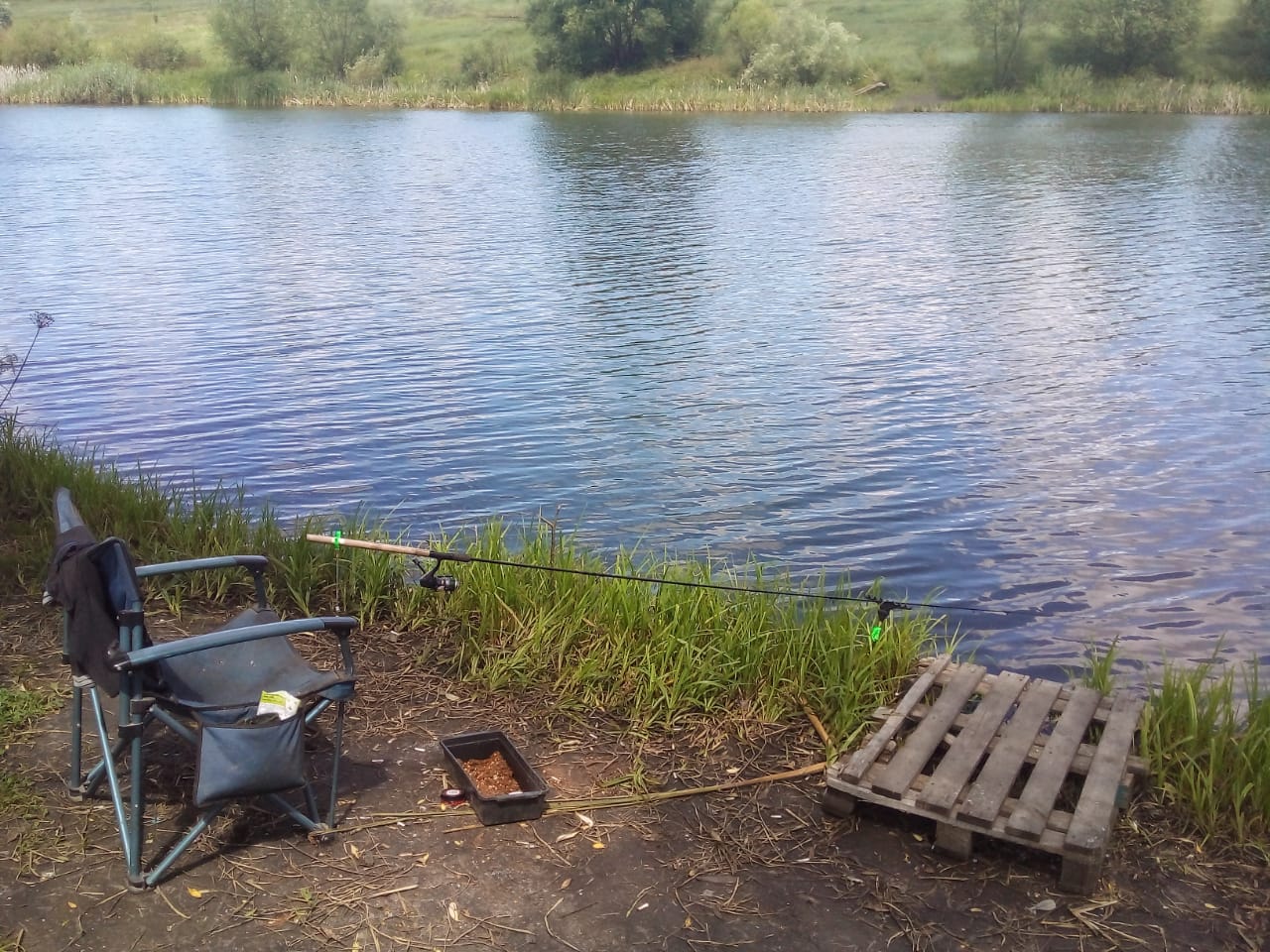 Решил в рабочий день вырваться с ночевкой на пруд, тем более слышал, что на пруду Рома "Амур" или "Рембо" не плохо отловился. Приехал примерно часов в семь вечера, разложился, выбрал точки, эхолот показал, что много рыбы ходит и крупной в том числе. Закормился только по несколько кормушек в точку, по другому не успел, стемнело. Примерно через час поклевка, карпик килошный в садке, затем еще поклевка и сход, опять поклевка опять сход, блин, шесть сходов, расстроился конечно. С рассветом решил закормиться бомбой, долго ждал полевки, и когда собирался уже уезжать, практически дуплетом два амура по 3кг. Только вытащил одного, мощная рыба, адреналина хапнул мама мия, и тут другой фрикцион пищит, пришлось еще раз включаться в борьбу с красивой и сильной рыбой. Мое терпение и надежда были вознаграждены, довольный и счастливый поехал на работу.