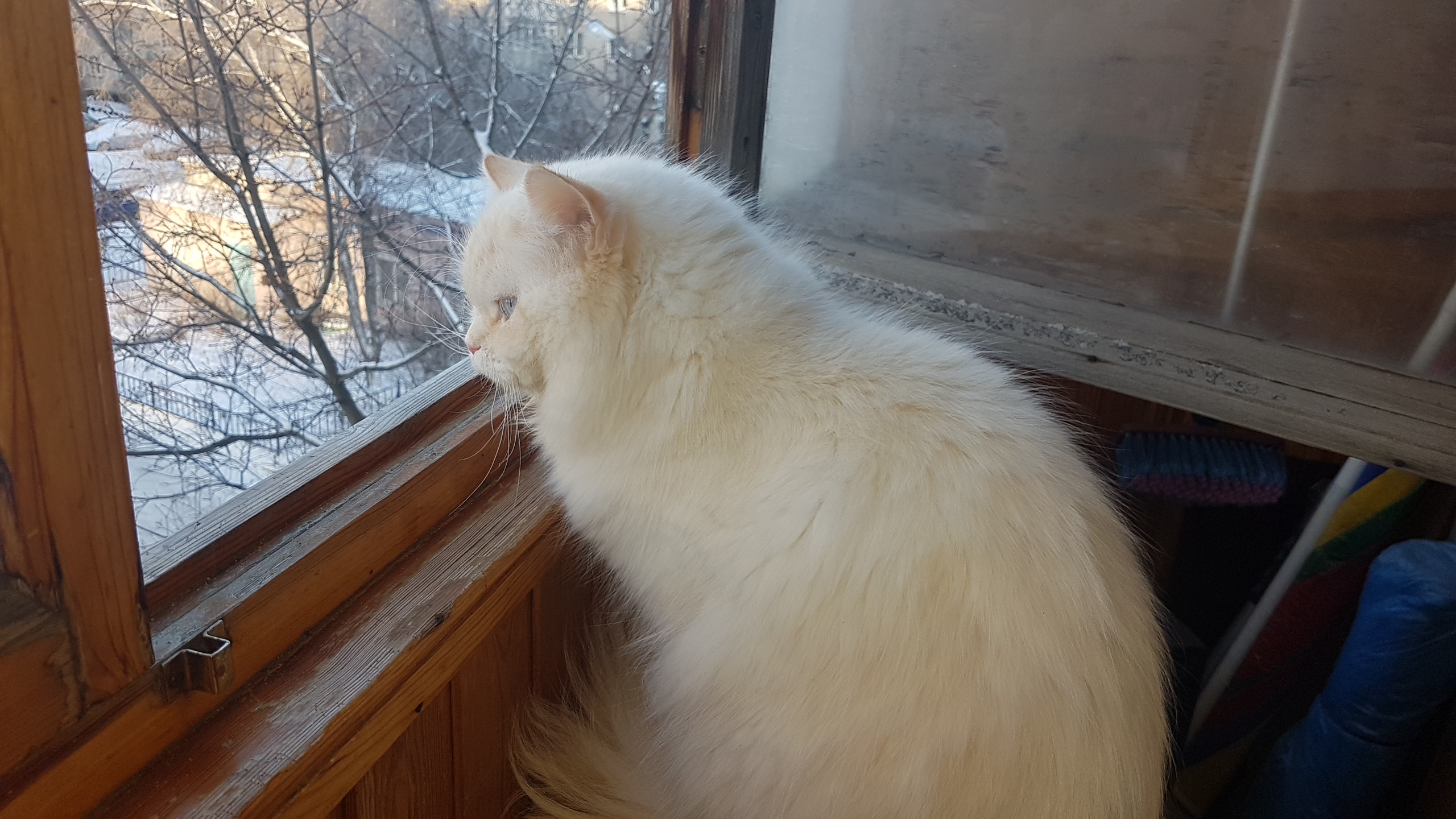 Моя кошка, какую с мужем брали из приюта, зимой у дочки живёт и, конечно, считает её своей. Постарела, седина появилась, 10 лет весной будет.