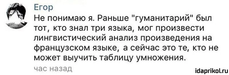 подобострастно слащав. К водке относится с презрением, зато гордо пьет