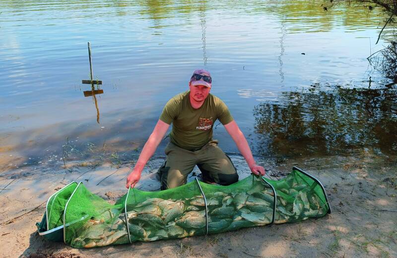 К обеду наловились от души и начали собираться. Понимал, что поймал много, но, когда начал тянуть садок из воды, впал в ступор. Что-то я, похоже, увлёкся. Садок гнулся, трещал, но всё-таки, кое-как, оказался на берегу. Себе забрал мАлую часть улова, остальное – отпустил обратно подрастать. Не нужно его столько. С Водосбросом прощаюсь до следующего года, одноразовая это рыбалка, больше не интересно.