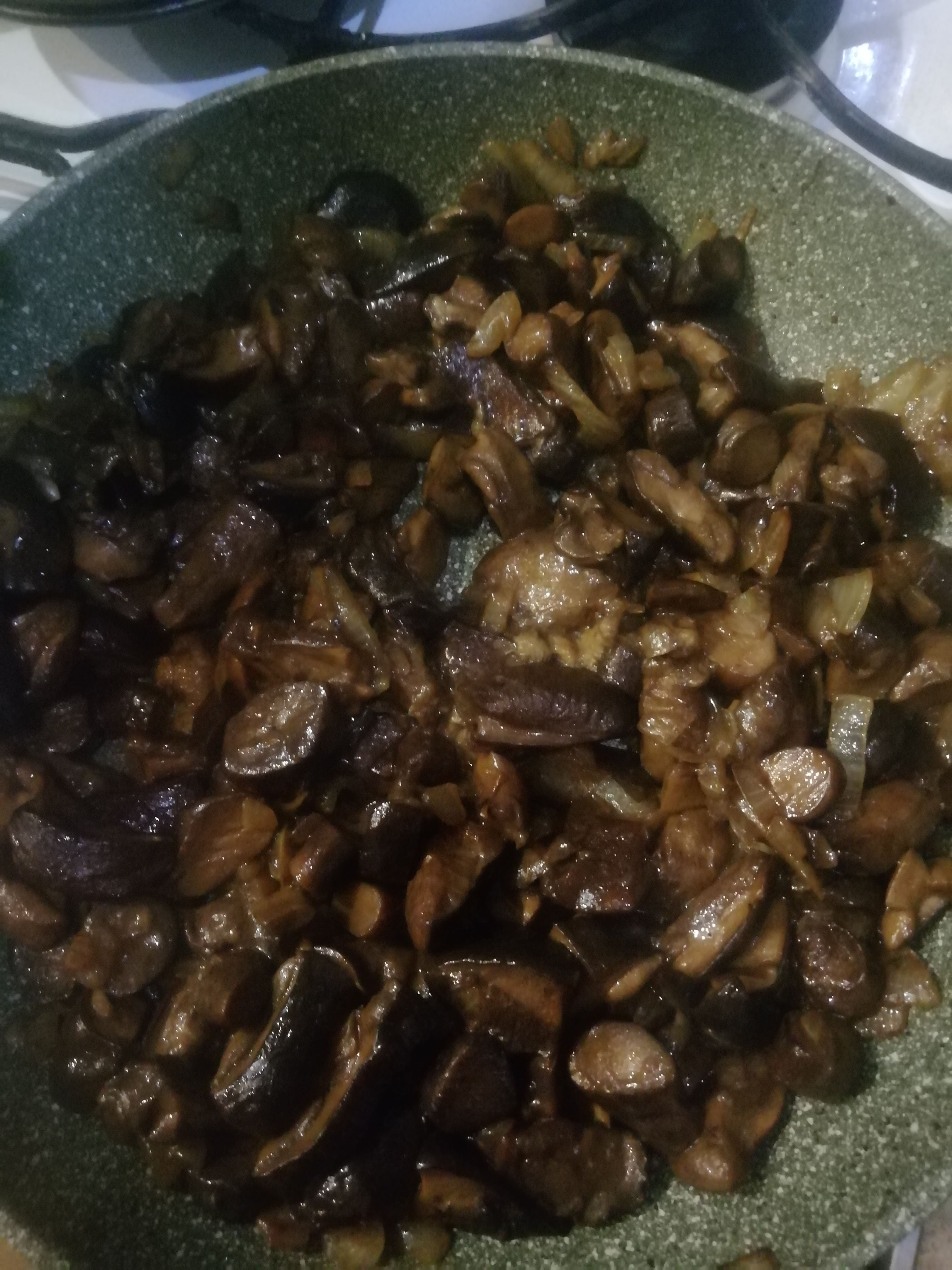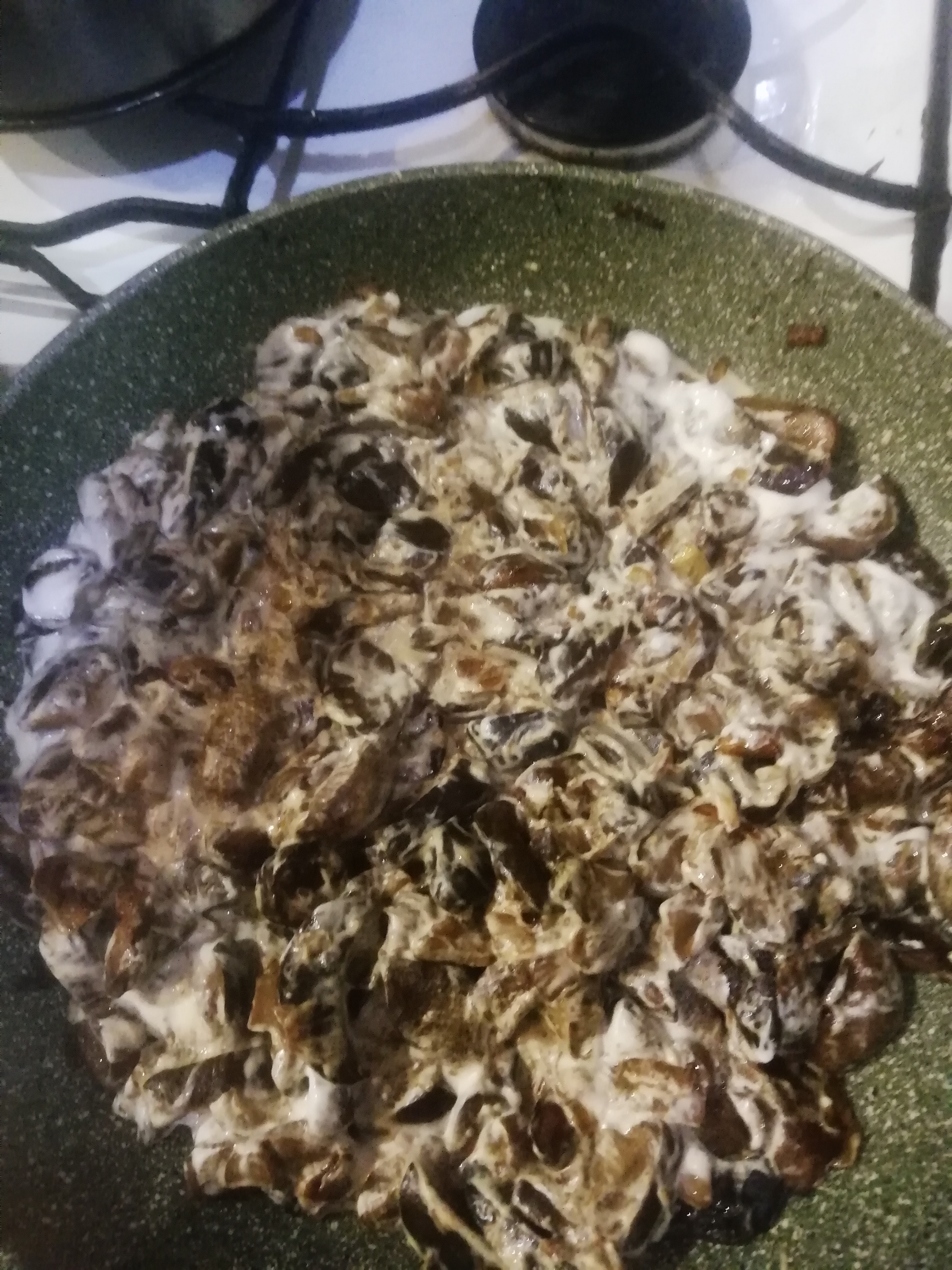 Грибочки , сначала обжаренные , а потом в сметане тушатся ....думаю бомба получиться ...