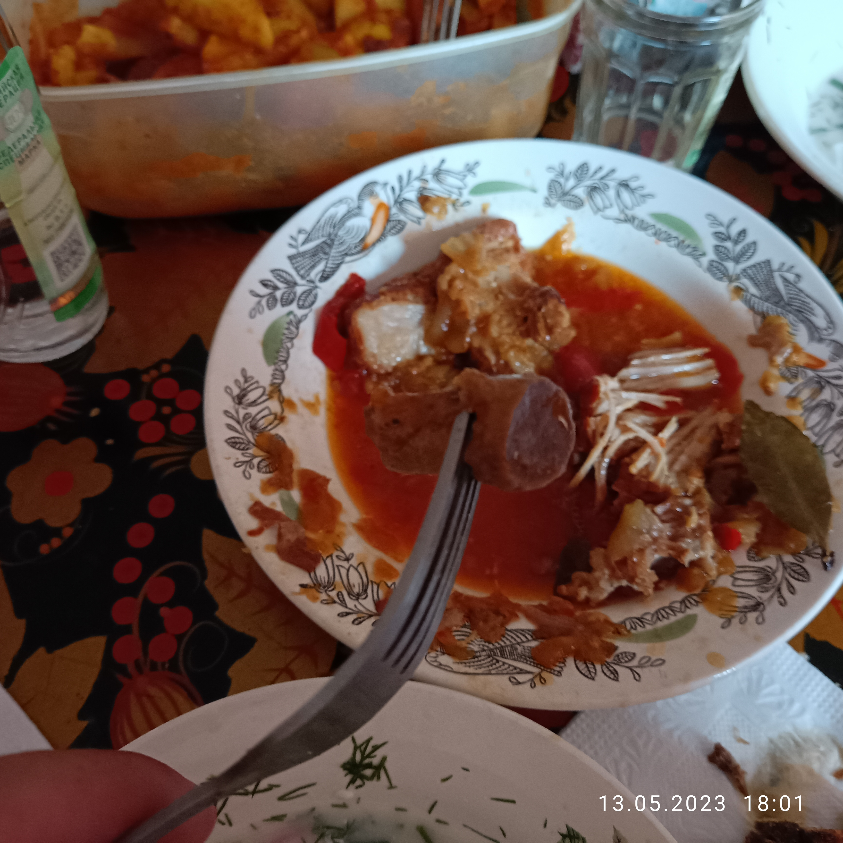 Получилось просто изумительно,жена с костями мясо ела,не чувствовала их.