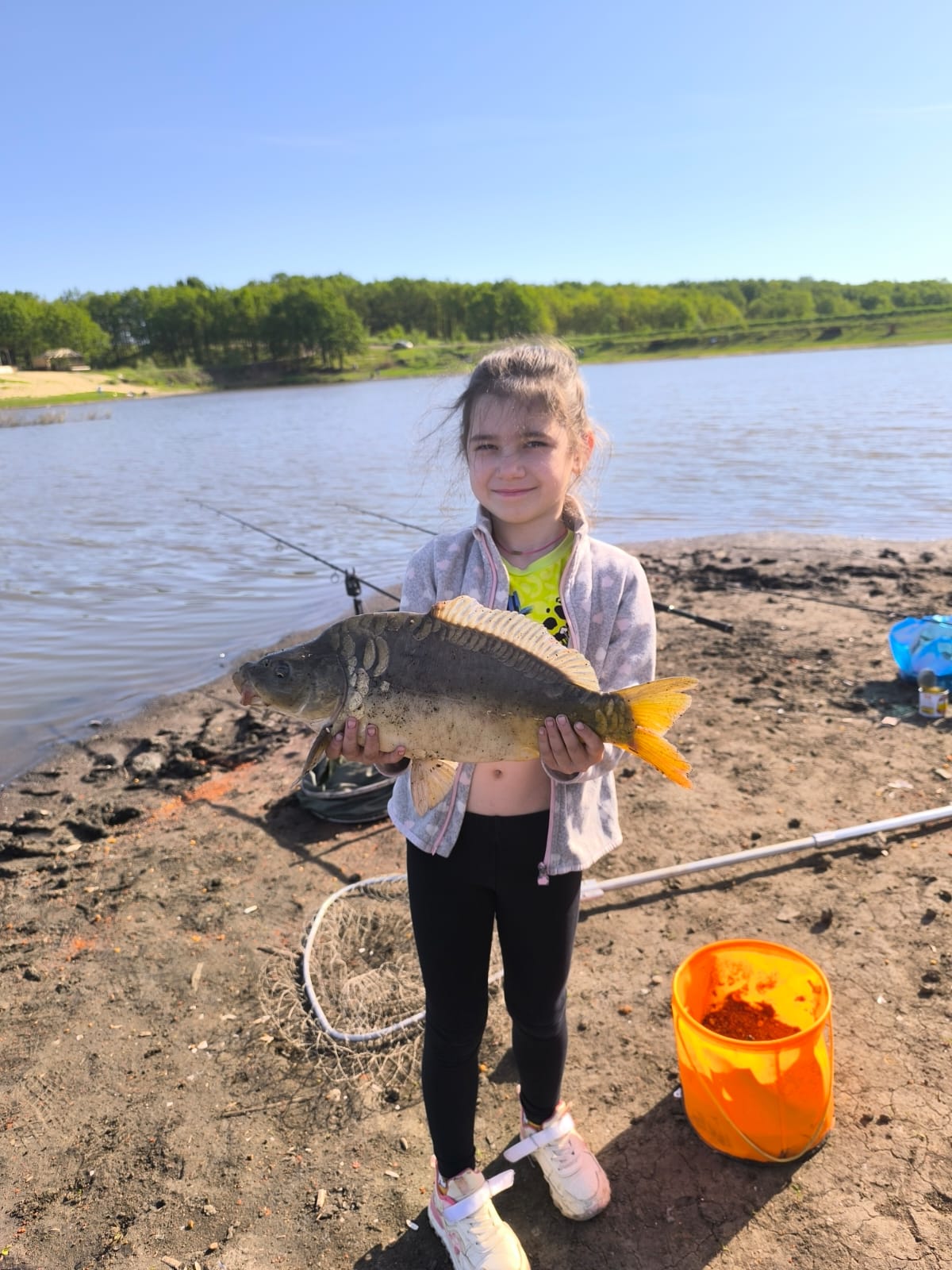 У нас сегодня была красавица Милана с мамой Юлей. Рыба на фото поймана мамой.