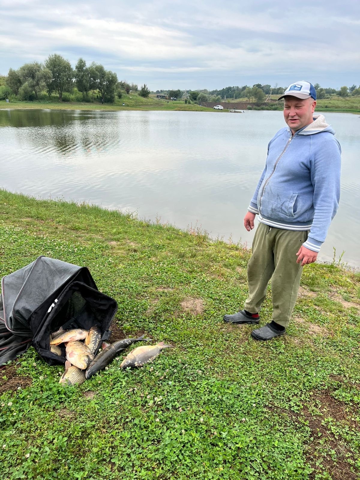 Всем привет!! Решил я 16.08.25г. побывать на пруду Сомовский, много наслышан про уловы на пруду и зарыбления. Недавно проходили соревнования на пруду и показали солидные результаты по вылову рыбы, я конечно пожалел, что не поехал на эти соревнования. Для меня пруд новый, необходимо его изучить, выбрал я усынок, где уже сидели рыбаки и что то уже поймали. Пруд интересный, есть места с кущами, там периодически плескалась рыба, есть голые места, есть с камышом, но где мне хотелось бы встать, места были заняты. Покидал эхолот, глубина в усынке где я стоял была 1-1,5 метра, поставил две удочки на толстолоба, видел его выходы, и две на карпа, за зорьку я поклевок так и не увидел. Но с удовольствием наблюдал как один рыбак, с корабликам, таскал карпов примерно по 4 кг, у него было несколько сходов и обрывов. После своей плохо подготовленной рыбалки я подъехал  к нему, пообщался, посмотрел его улов, прекрасные зеркальные карпы и поздравил с удачной рыбалкой. Поймал он штук 5 таких карпов.