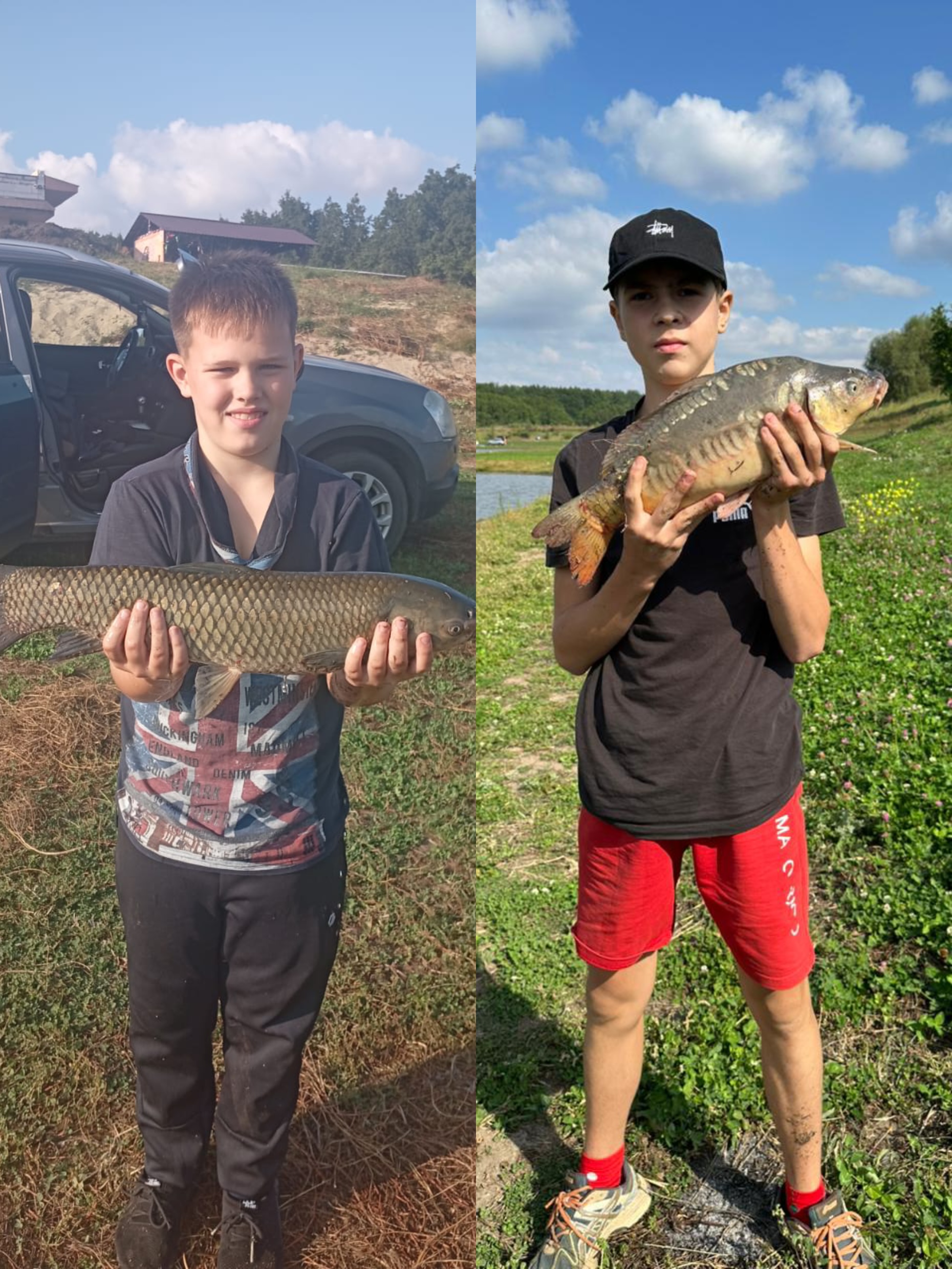 В красных шортах Степа и второе фото Артём . Артём точно сам поймал рыбу. На счет Степы не уточнили