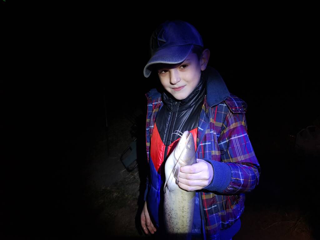Своих первых обитателей водоёма, поймали ещё по темну, отец отличился упористым карпиком на флэт оснастку.