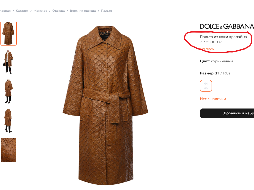 Жаль.... на щучьей потренироавться... а потом можно и к более серьёзным вещам подходтить... я как цену глянул... так поперхнулся... и это на детский по нашим меркам размерчик... из дзена фотки... Долбче&Габбана... а вот в "ексклюзиве" - инетмаг из ската до фига чего продают... правда и цены то же "эксклюзив"