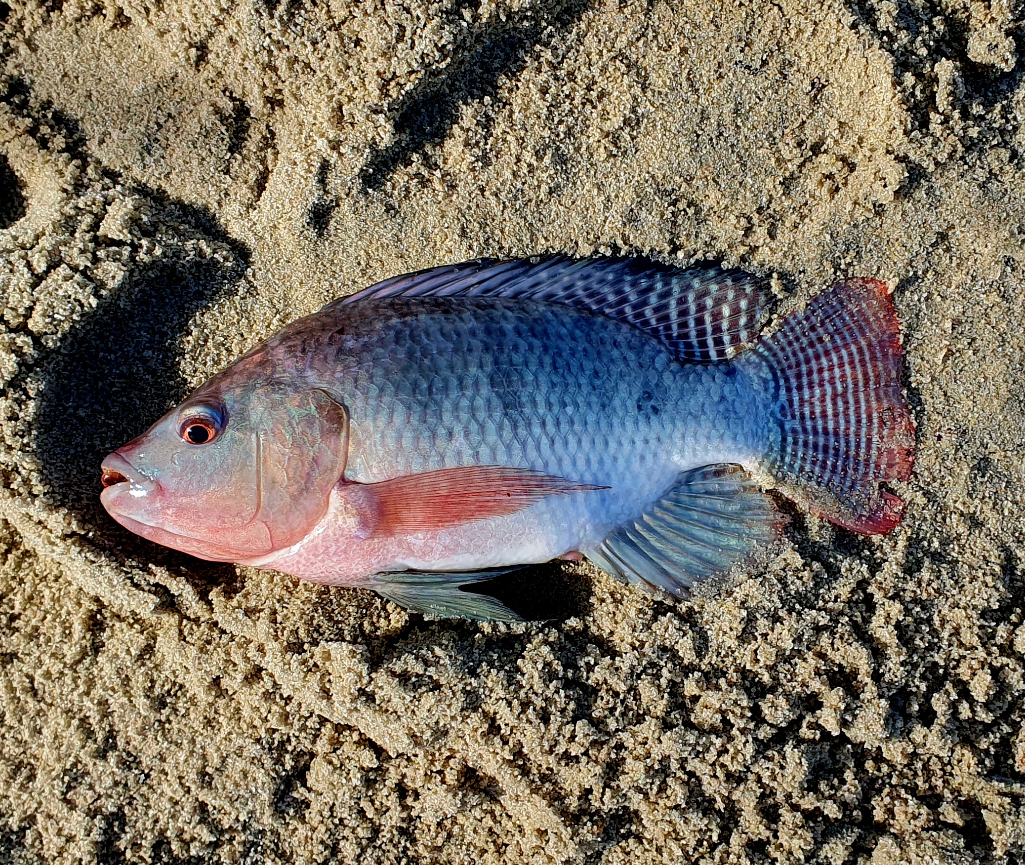 Со временем, на точке собралось такое количество рыбы, что поклёвки часто были даже в толще, как при ловле плотвы или уклейки. Квивертип сразу после приводнения кормушки начинал ходить ходуном, рыба жадно набрасывалась на прикормку и насадку. Случайным образом, помимо тиляпии удалось поймать маленького карпика и старую ржавую консервную банку, которая уверенно клюнула на пучок опарыша.