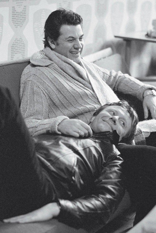 ...Bели мы себя, безусловно, не как солидные люди, отцы семейств. Вваливались к кому-нибудь домой гурьбой среди ночи, расходились под утро. Вместе нам всегда было очень хорошо и весело. Дурачились, пели, пили, часто не в меру. Изрядно выпив, включали наш гимн — музыку Hино Роты из фильма Феллини «8 1/2», брались за руки и вели по кругу хоровод — сначала в одну сторону, потом, по сигналу, в другую.
