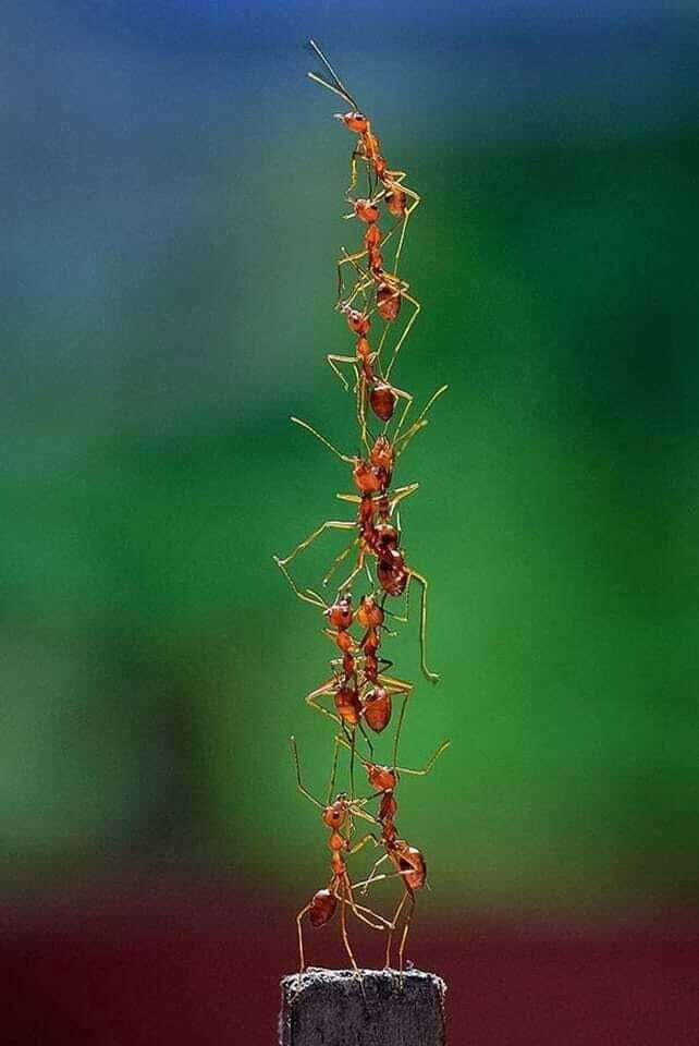 Те, что были внизу, конечно же, находились в воде, но до определенного времени. Их добровольно сменяли муравьи с верхнего ряда. Они спускались в воду и только после этого, уставшие держать своих сородичей, насекомые вылезали на этот живой островок для отдыха, чтобы потом вновь сменить своих друзей. Причем ни один из них не пытался быстрее подняться на верх, наоборот, спешили спуститься в воду, туда, где было труднее всего.