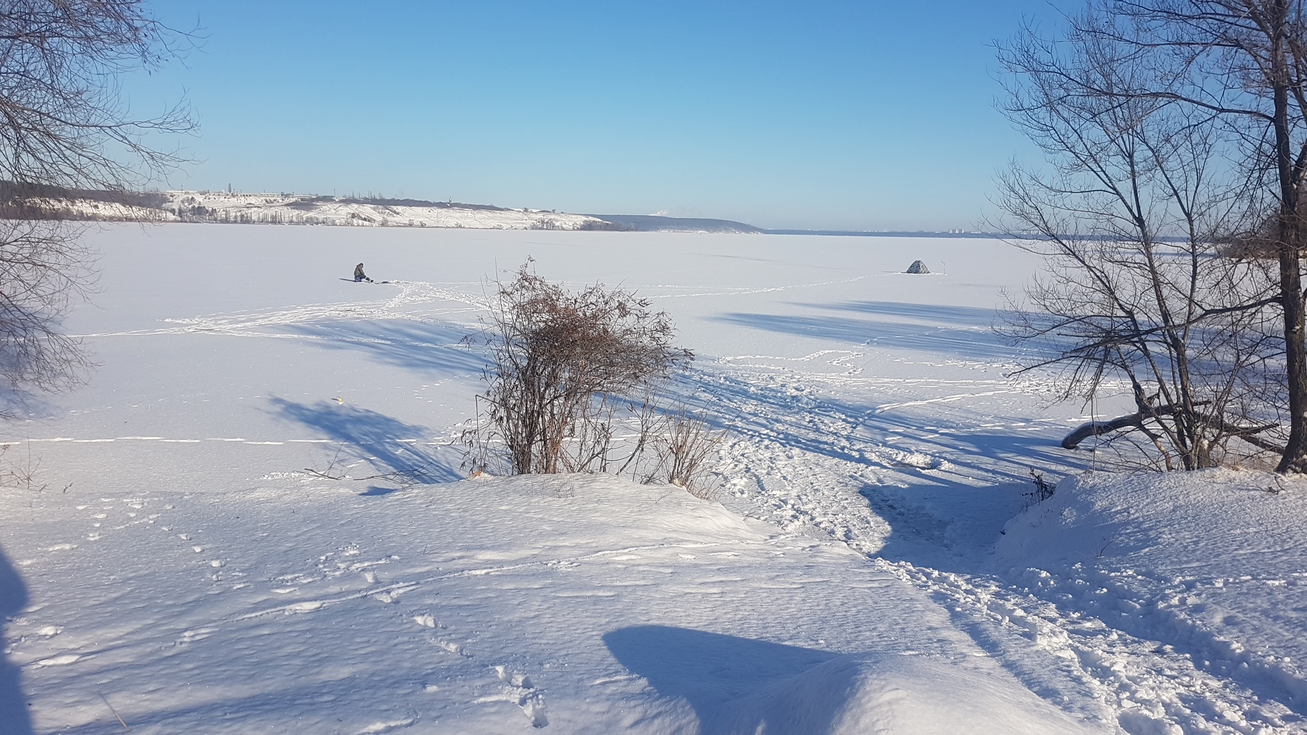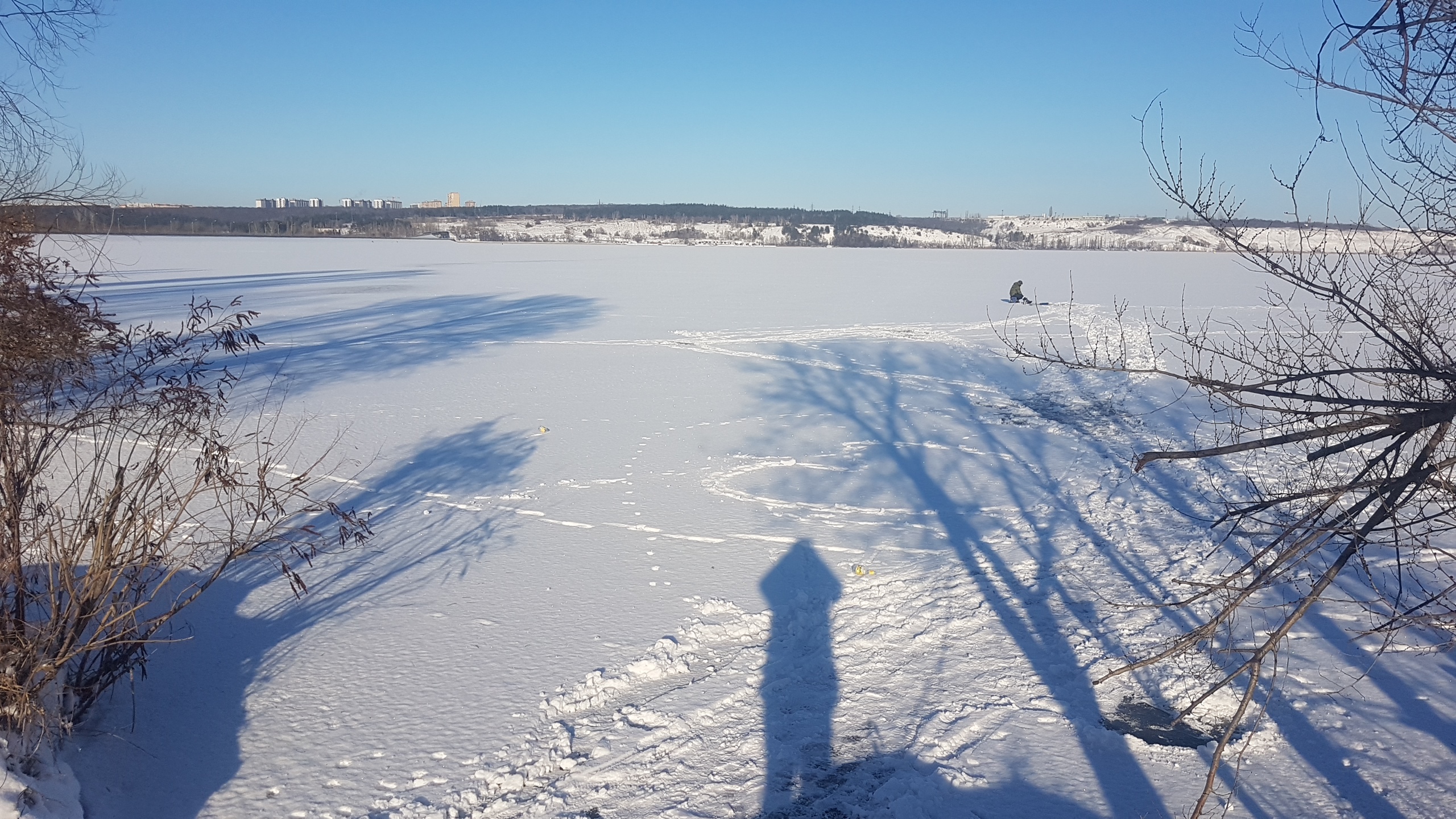 Под церковью с утра до 11 один ёрш и пара плотвичек народ бродил кругами, видимо не очень клюёт.Да лёд трещит и двигается прямо под ящиком. Сместился к левому берегу, там окушок, правда размером со спичку.При выходе пришлось нарезать круги, так как впереди образовалась река. Лед поднялся сантиметров на 40, из трещин вода почти фонтаном идёт.