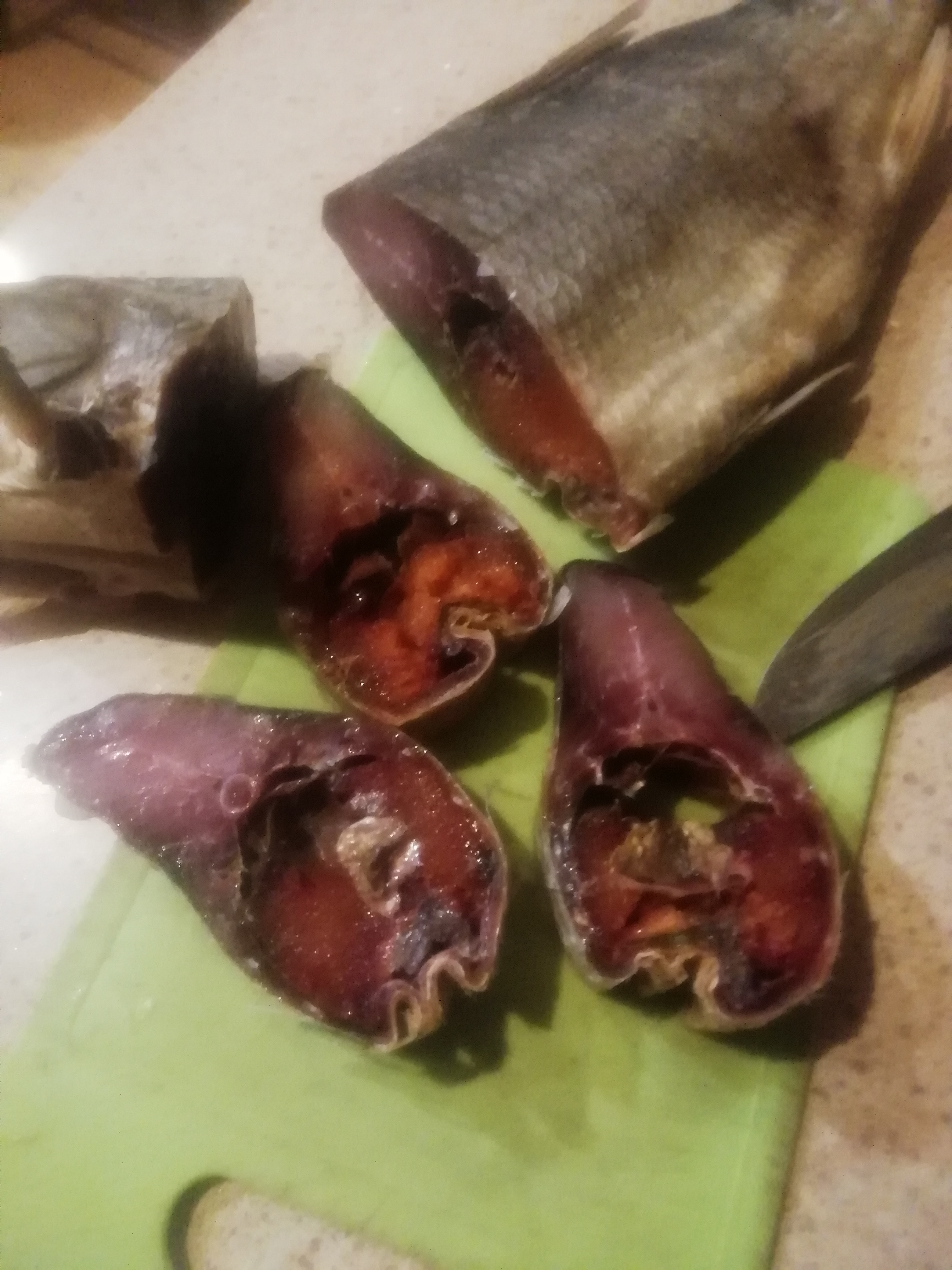 Сейчас доедал хвост , вот совершенно разная рыба ( от первой ) , мясо как балык , нет той плотности ...но сцуко очень вкусно ...