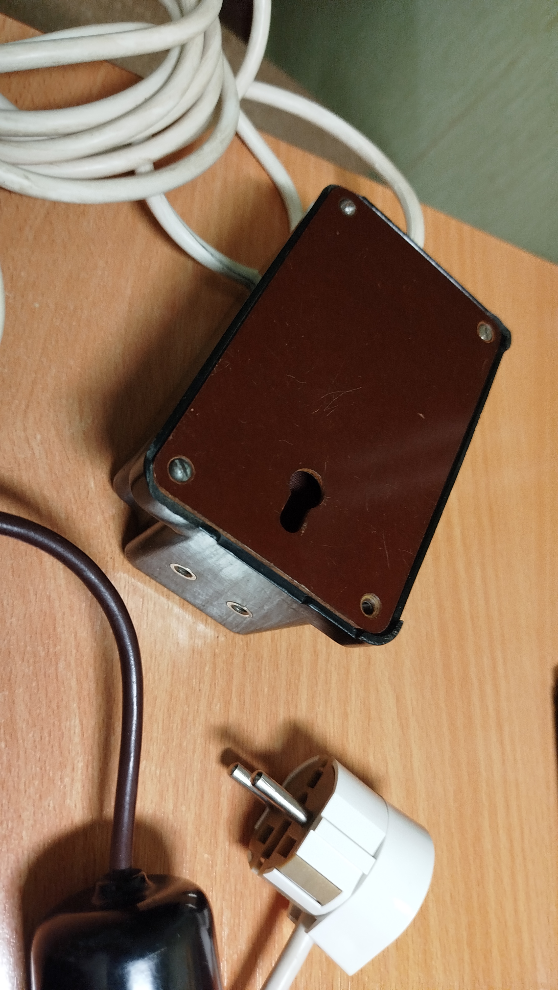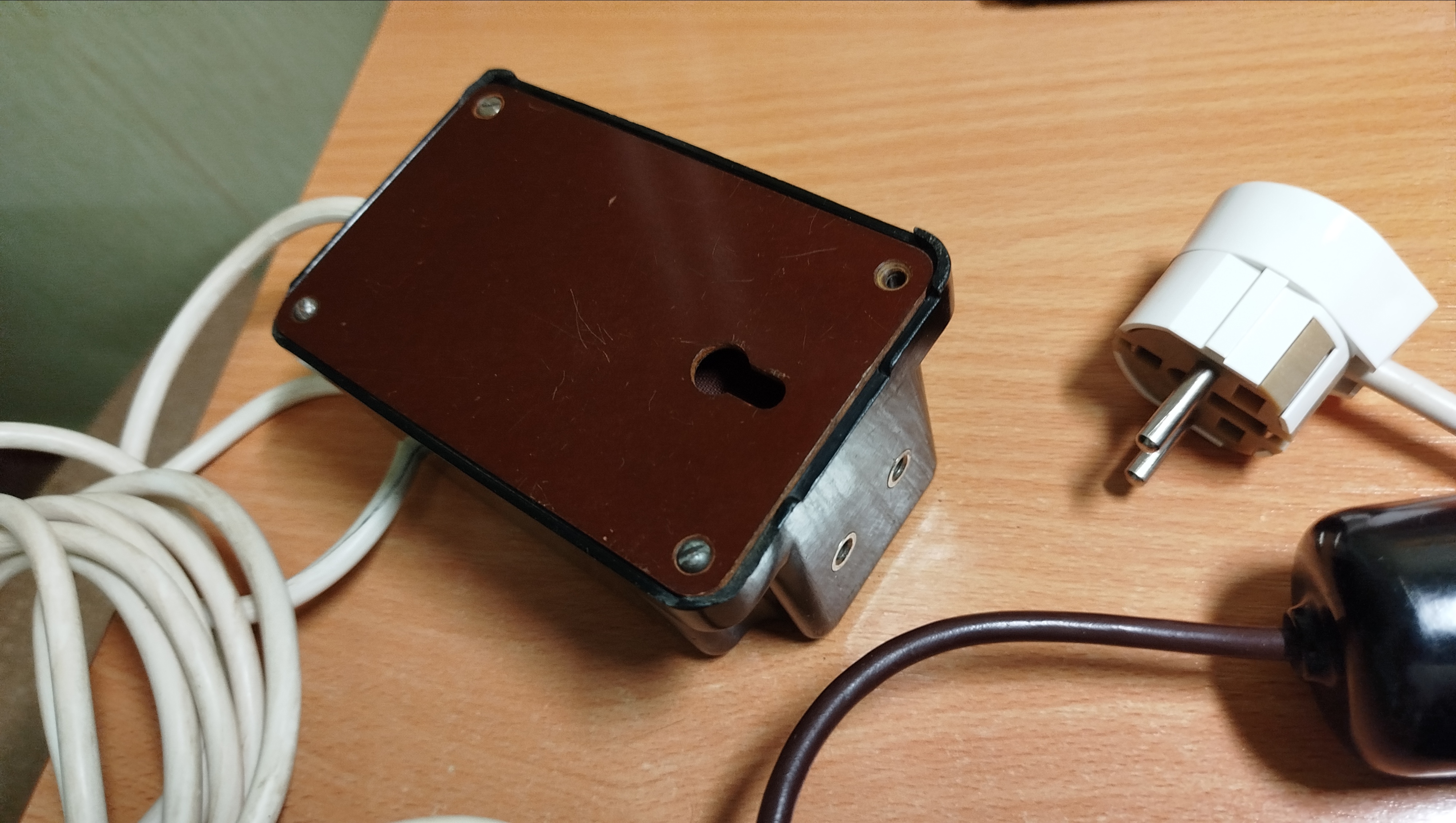 провод не родной на фото, должен быть белым и в спираль свитый.Переключатель напряжения для пользования в поездах, там для бритв было 110 в розетки.