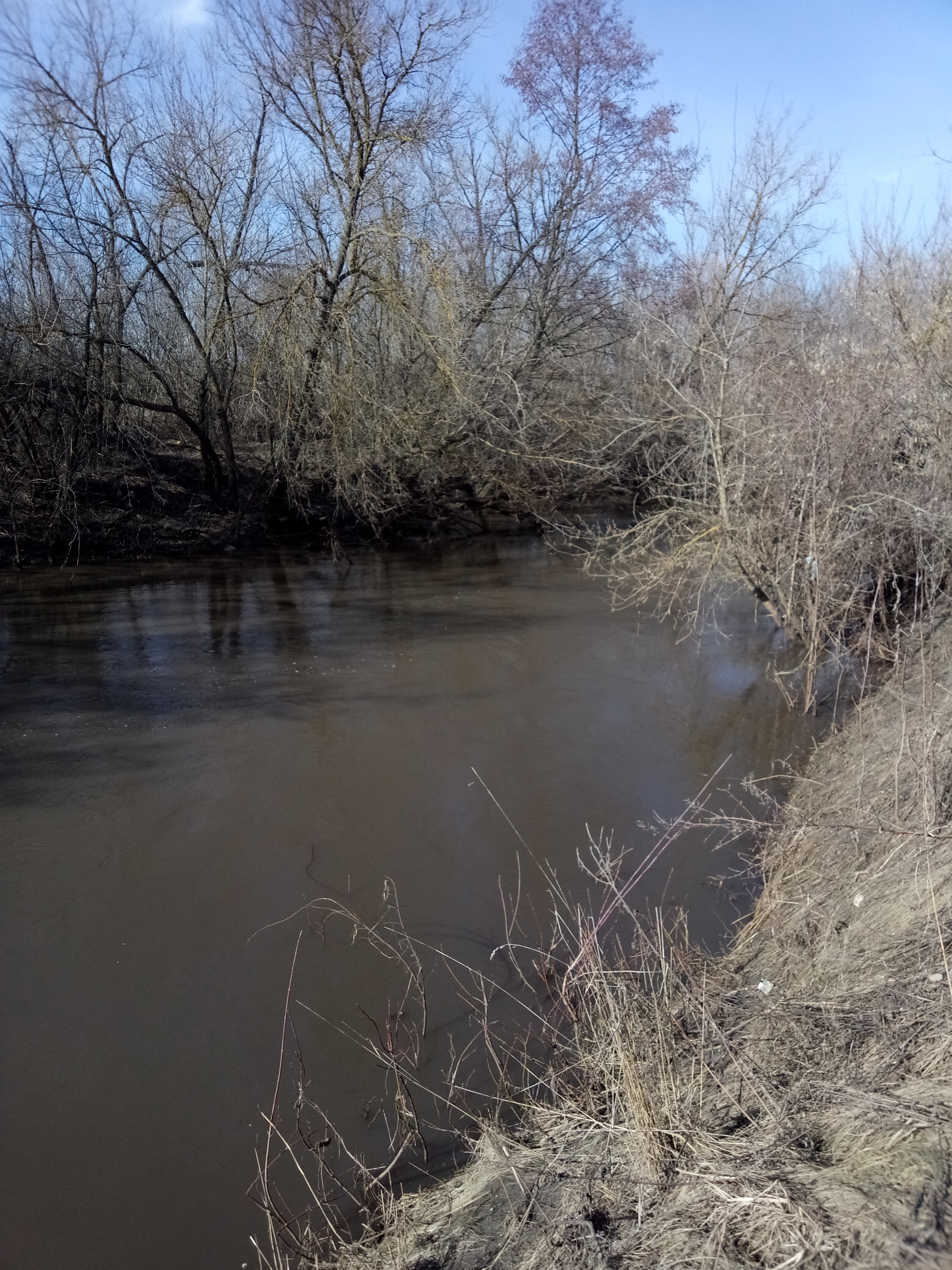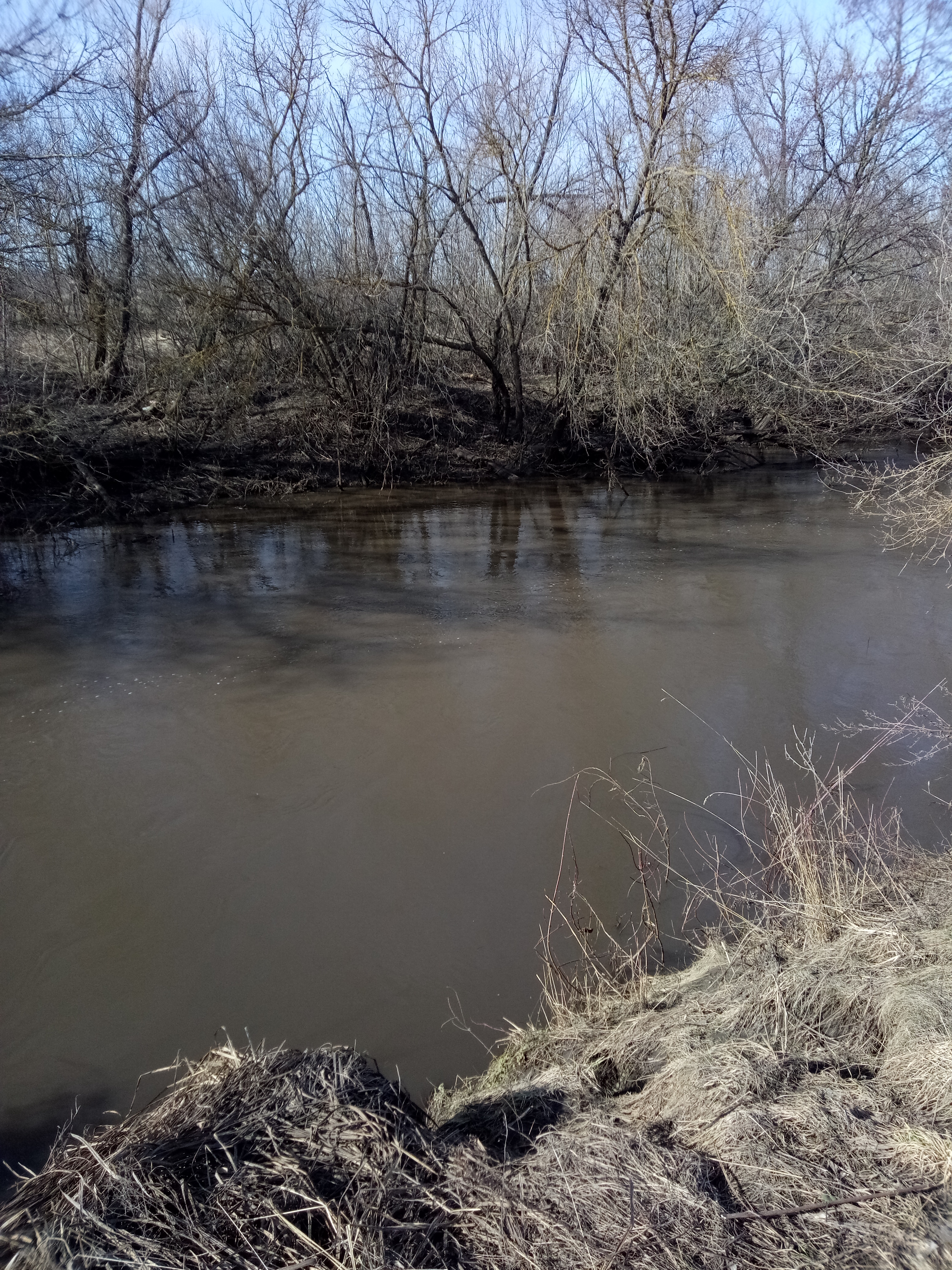 Был на речке от Ендовища вниз. Вода ,похоже, спадает и светлеет - сейчас средний весенний уровень.
