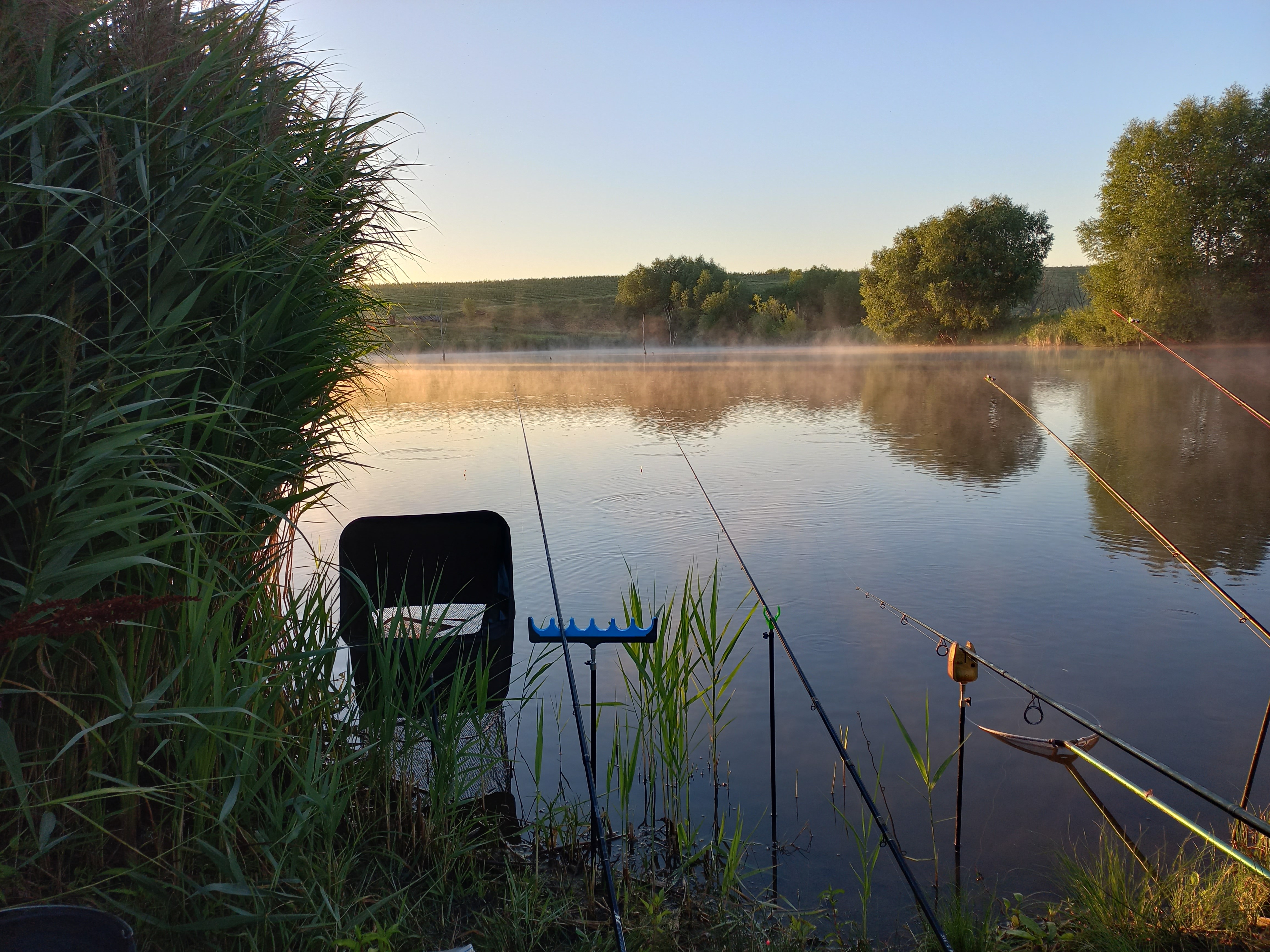 Карпята клевали час-полтора, потом куда то ушли. Было это около 10 часов утра, а в 12 мы смотали удочки и довольные уехали домой. Для детворы прудик подойдёт очень хорошо. Проблем с забросом снасти и вываживанием не возникло. Прошёлся по берегу, трава скошена, деревьев не много.