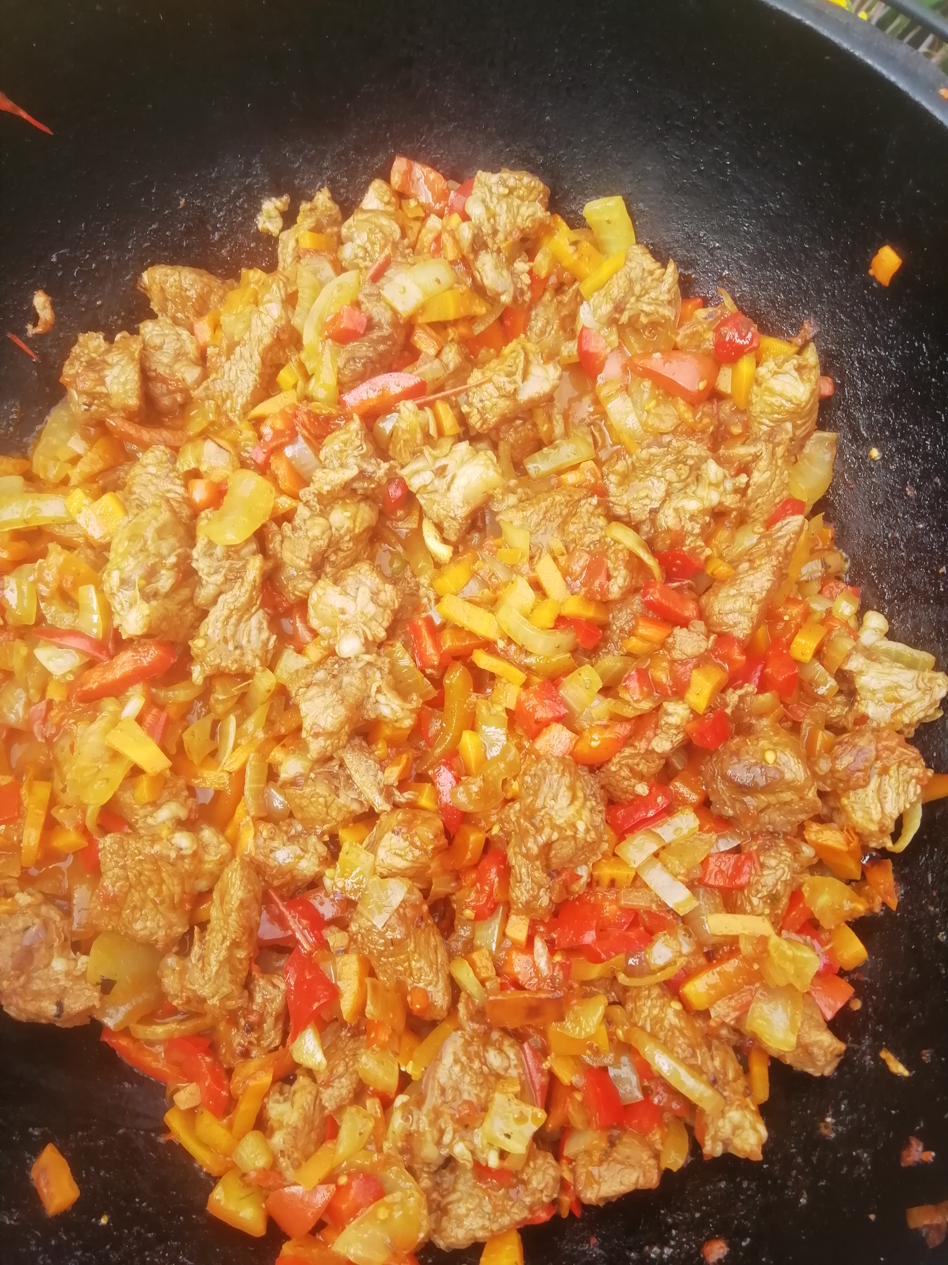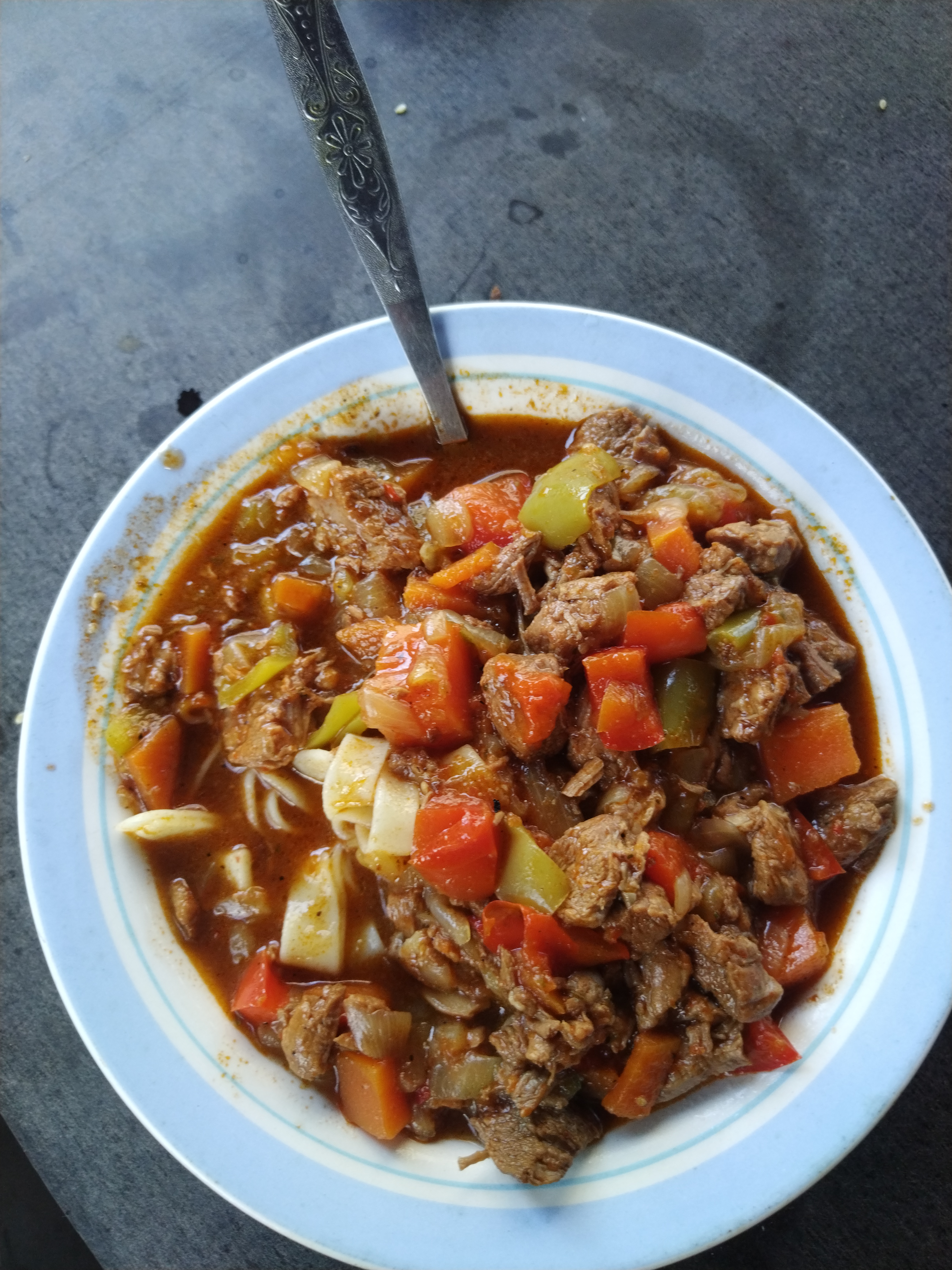 Сегодня , мясо , помидор , перец болгарский , лук ,морковь , и без лапши , и МНОГО МНОГО МЯСА ......может картох целых жена сварит , себе ...