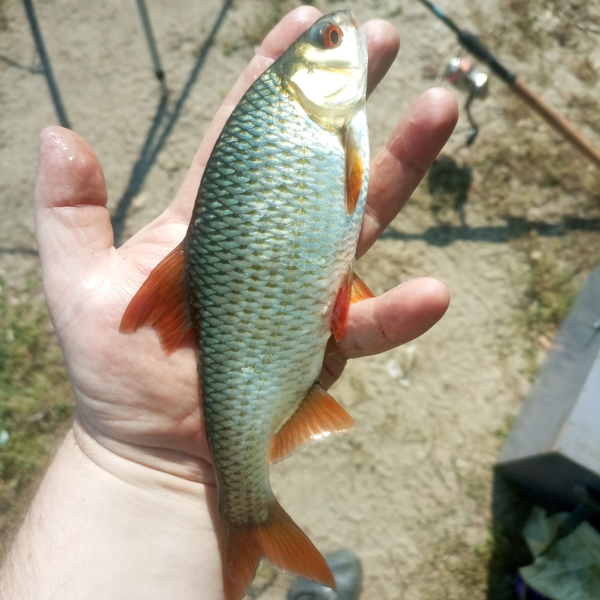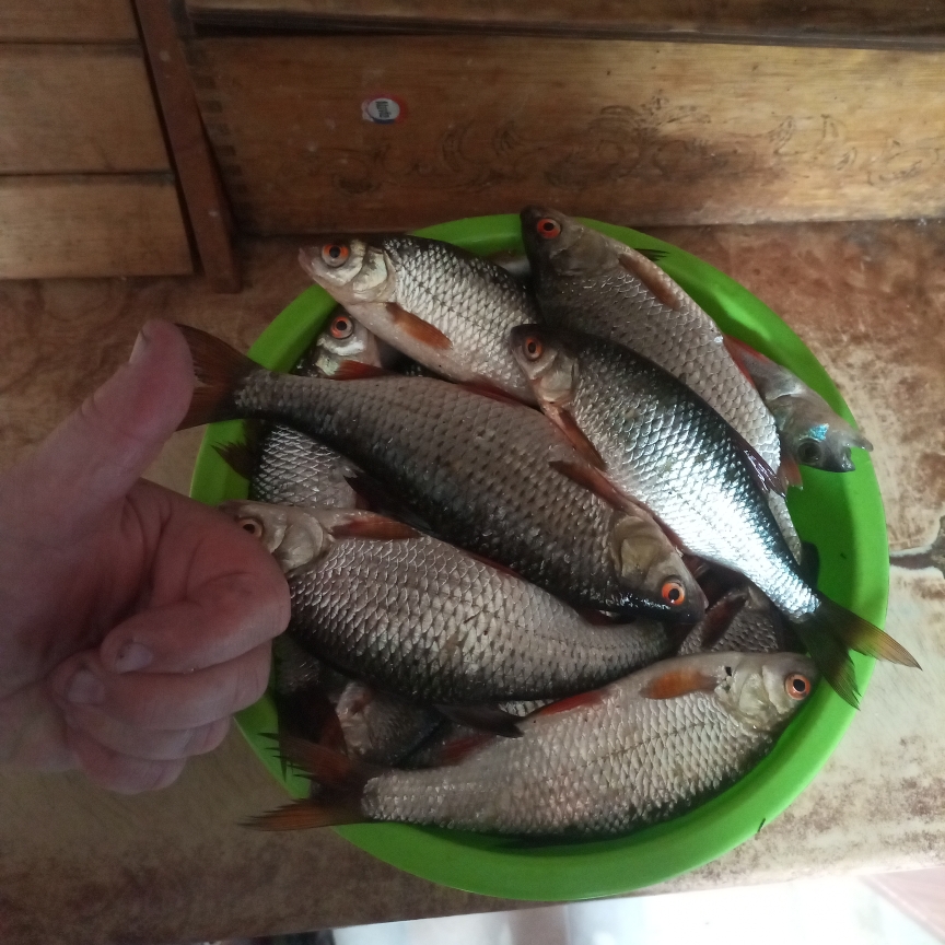 Наступило время ожидания. Взгляд ловил каждое движение покачивающегося на волнах поплавка. Время шло, а поклёвок не было. Стал «играться» с глубиной, чуть-чуть сдвигая всю оснастку, стараясь найти рабочий, в данных условиях вариант. Лишь спустя минут 20 удалось поймать первую густеру! Дело пошло веселее, поклёвки пошли регулярно. Периодически чередовал кукурузу и опарыша на крючке.