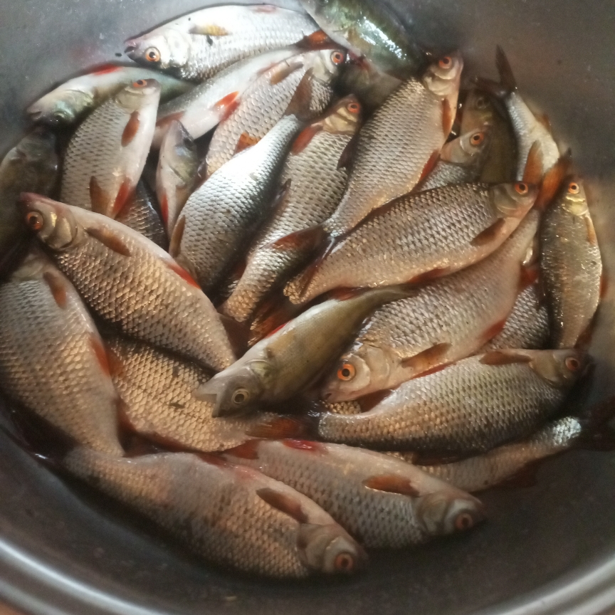 Порадовало, что на Фидер сегодня практически не попадалась уклейка, хотя рыбаки рядом продолжали "душить" её на маховые удочки. Свои три килограмма уклейки я поймал ещё в прошлые выходные. (Отчета нет, но фото прилагаю)), поэтому сегодня целевой рыбой была плотва! А ее сегодня я поймал почти 5 кг! Теперь до лета отличной таранкой затарился!!! . Да.... Кормил прикормкой от "Флагман" с добавлением кормового мотыля и пшена. Ловил на опарыша и мотыля. Поводки 0.08 30-80 см. Дистанция около 40 метров. В общем,всем кто дочитал до конца мои каракули, желаю крепкого здоровья и зачётных рыбалок! Мокрых садков Вам друзья!!!
