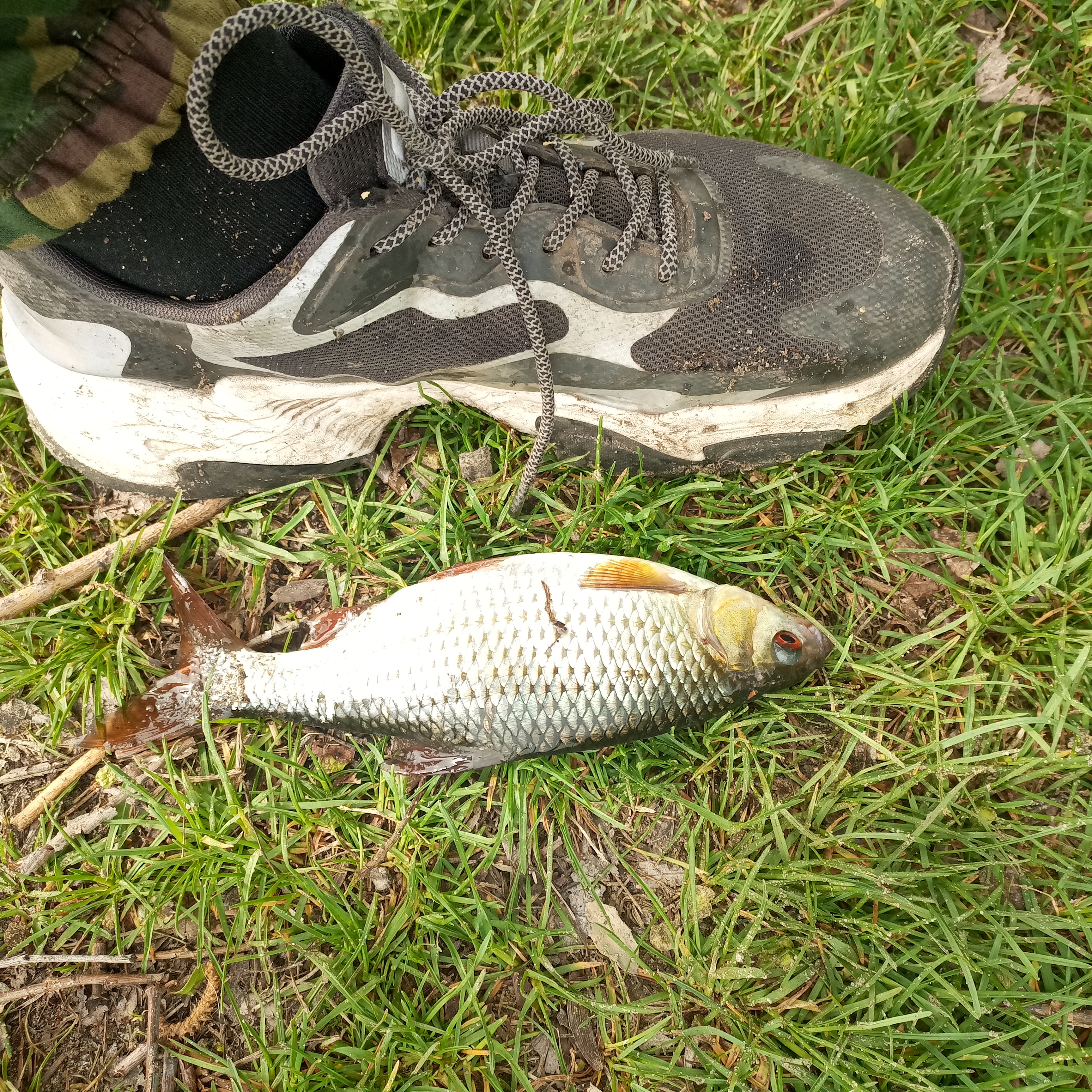 Дальнейшая рыбалка прошла в формате постоянной борьбы с погодой. Одно мучение, одним словом. По оснастке остановился на варианте, когда насадка «идёт» в нескольких сантиметрах ото дна, при чём, все подпаски сдвинул вниз к самому поводку. Докидал остатки прикормки, сместившись метра на 2 ближе к берегу, дабы лучше видеть поплавок. На «плывущую» надо дном насадку стала попадаться плотва, другой рыбе такой вариант подачи был явно не по вкусу.