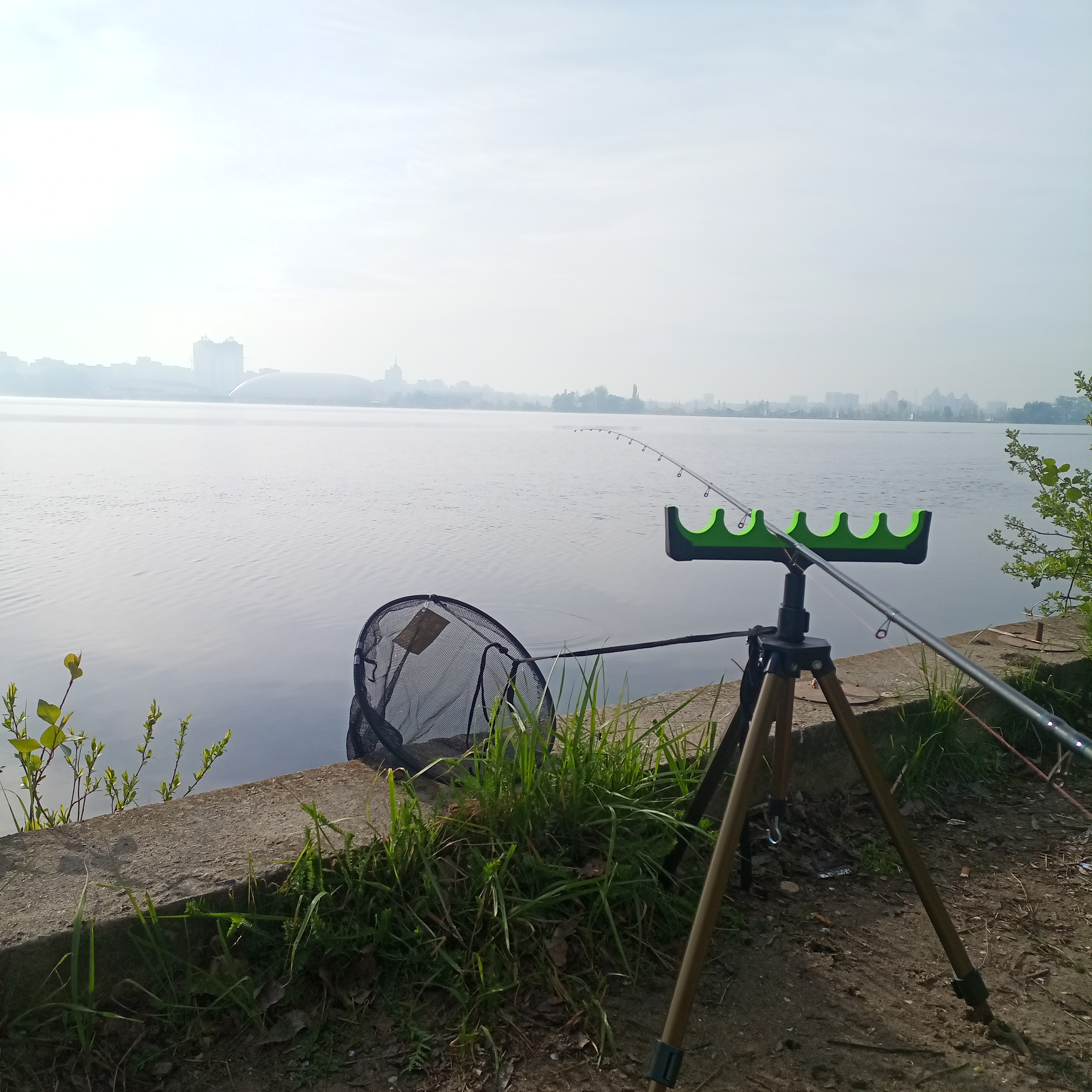 Рыбалка, до последнего, была под угрозой срыва. Всю ночь шёл дождь, прекратившись лишь под самое утро, позволив в начале пятого утра всё-таки устремиться к водохранилищу. Дождевой фронт медленно «уходил» куда-то на запад, уступая место ярко-алым всполохам нового дня. Прибыв на место, крайне удивился полному отсутствию рыбаков, видимо слом погоды влияет не только на активность рыбы, но и на тех, кто её ловит.