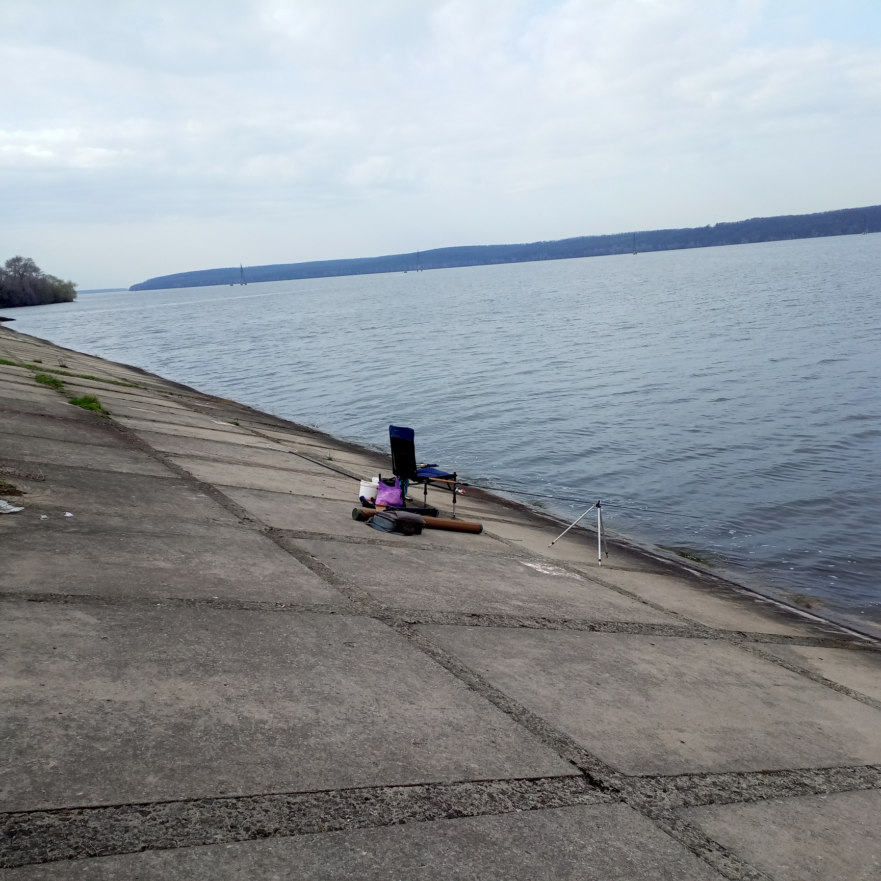 Приехав на место в пятом часу вечера обнаруживаю, что проблем с местами действительно нет. На берегу - ни души, садись куда душе угодно. Может не клюёт, а может будний день и все на работе (хотя, судя по обстановке на водосбросе в мае, у нас вообще никто в городе не работает).