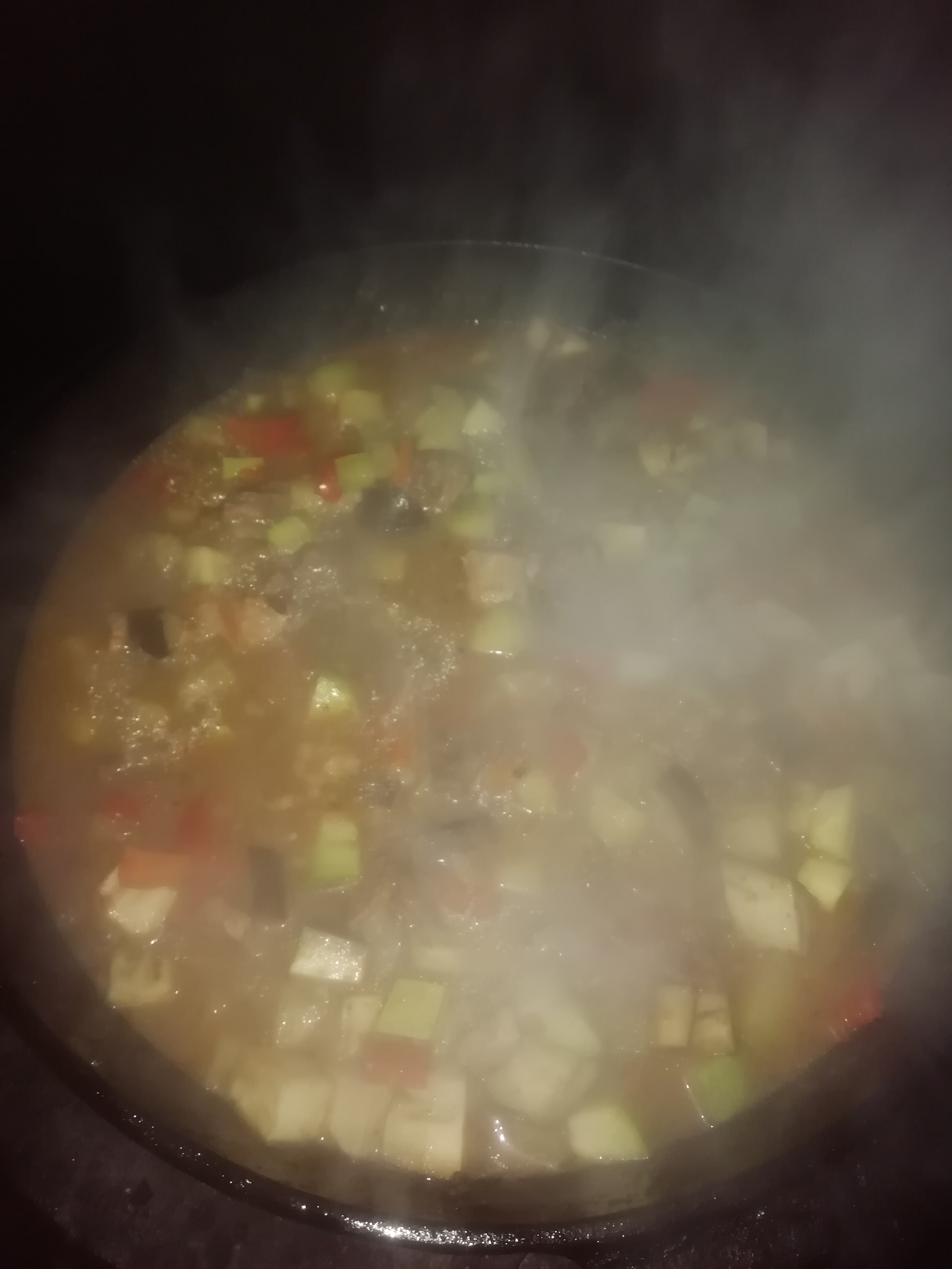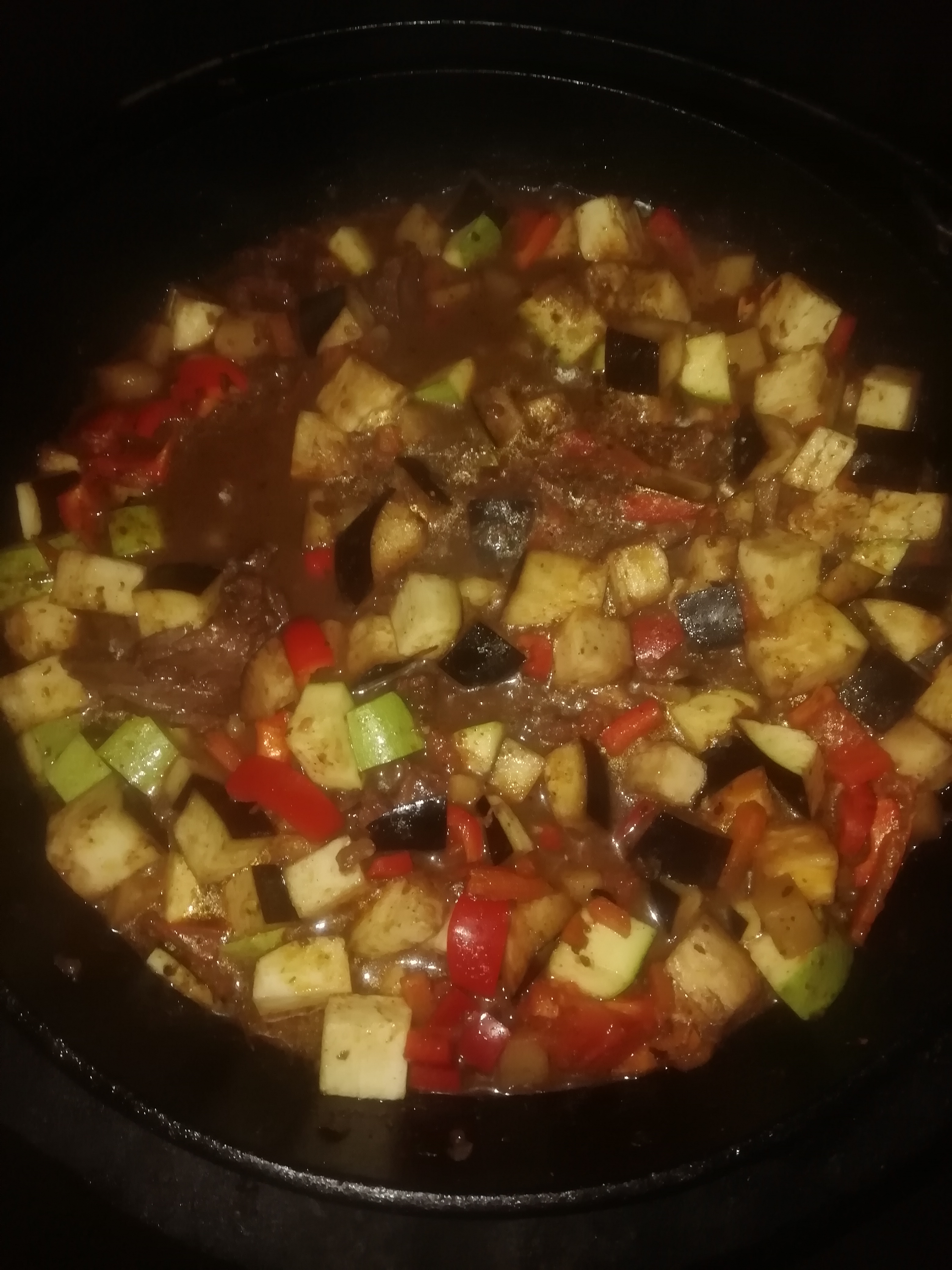 Ну бобр тушится , с помидорами , перцем , кабачками , баклажанами , и попозже картох добавлю ...