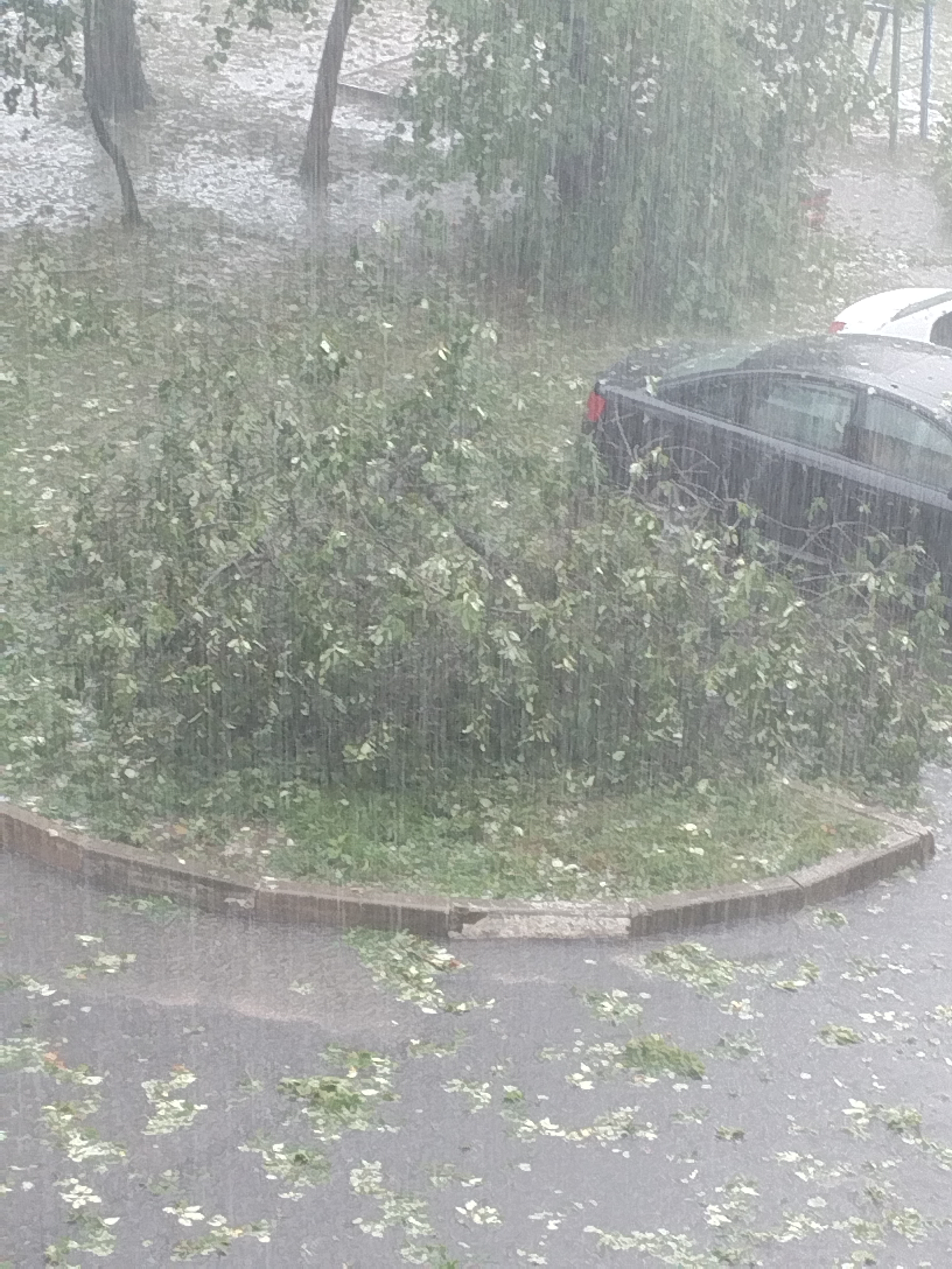 Машину слегка град покоцал. Меня не сильно,но все равно( градины на фото и по больше были. Это я домой принес жене показать. Подтаяли уже))