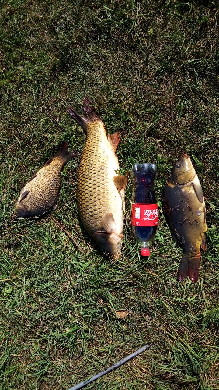 По рыбе - полтора десятка плотвы с пол ладошки, один окунь с ладонь на махалку. На фидер - тишина. У друзей один карпик грамм на 600 и два отрыва поводка при поклёвке. На дне много зацепов, особенно ближе к руслу. Вся рыба поймана метрах десяти от берега.