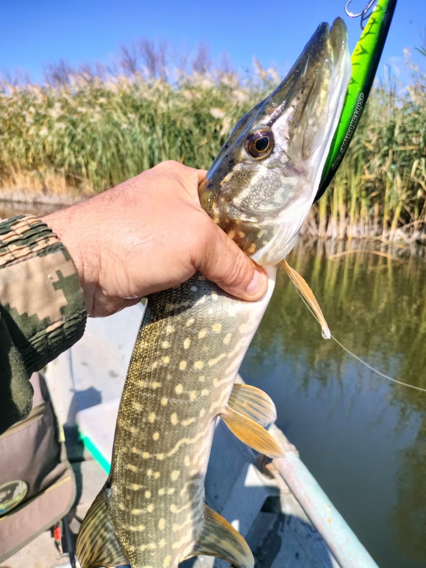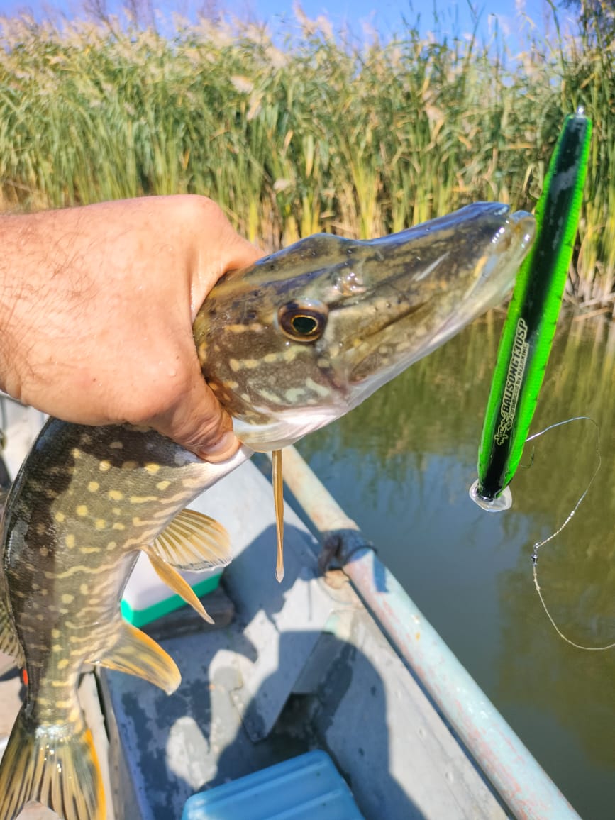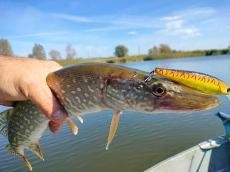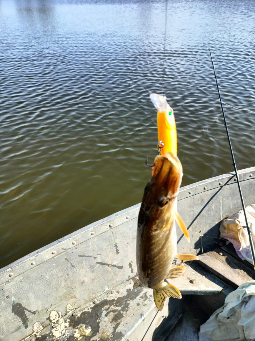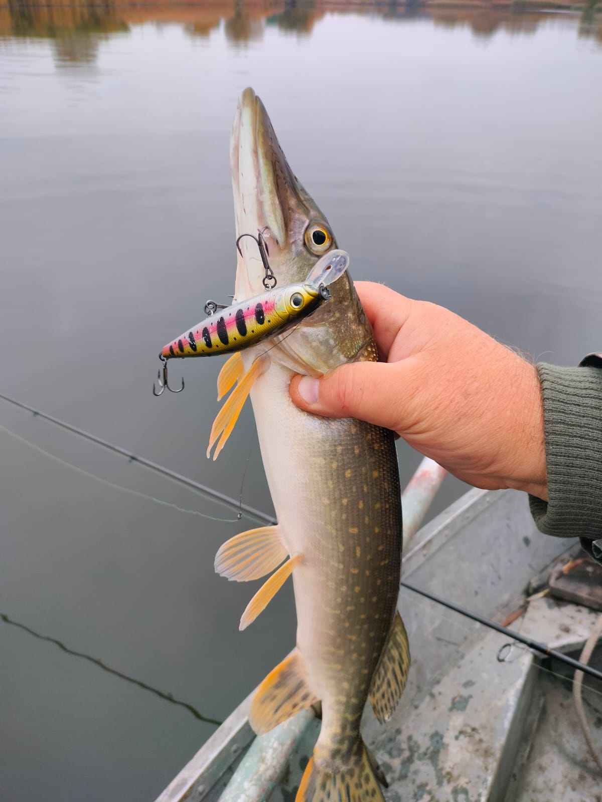 Бодрого дня! Отдыхал в выходные на рыбхозе 64....Оторвался по щуке, крупной пока не довелость поймать ,а вот мелкая достаточно активно себя проявила ...плюс проскакивал и окунь...За 2 суток хвостов 20 отпустил ,не считая сходов, забрал 3-х щучек ,которые более менее сьедобные и пяток окуней...Иногда пиписочный окунь хватал вертушку №5 ,а щука садиласть на окуневывй воблерок с мелкими тройниками за счет чего сходы , но были и те кто просто его целиком глотал...😉 Мелко щука стоит вся в камыше ...а крупняк бьет на глубине ,но мне лень было на ямах стоять ...хотя пробовал на глубинах кидать ...но тишина,там надо выхода ждать ...а у камыша веселей....Кстати несколько щуков и окуней поймал с мостка у домика....как то так ....Похолодает, тогда можно и на крупняка поохотиться...😉
