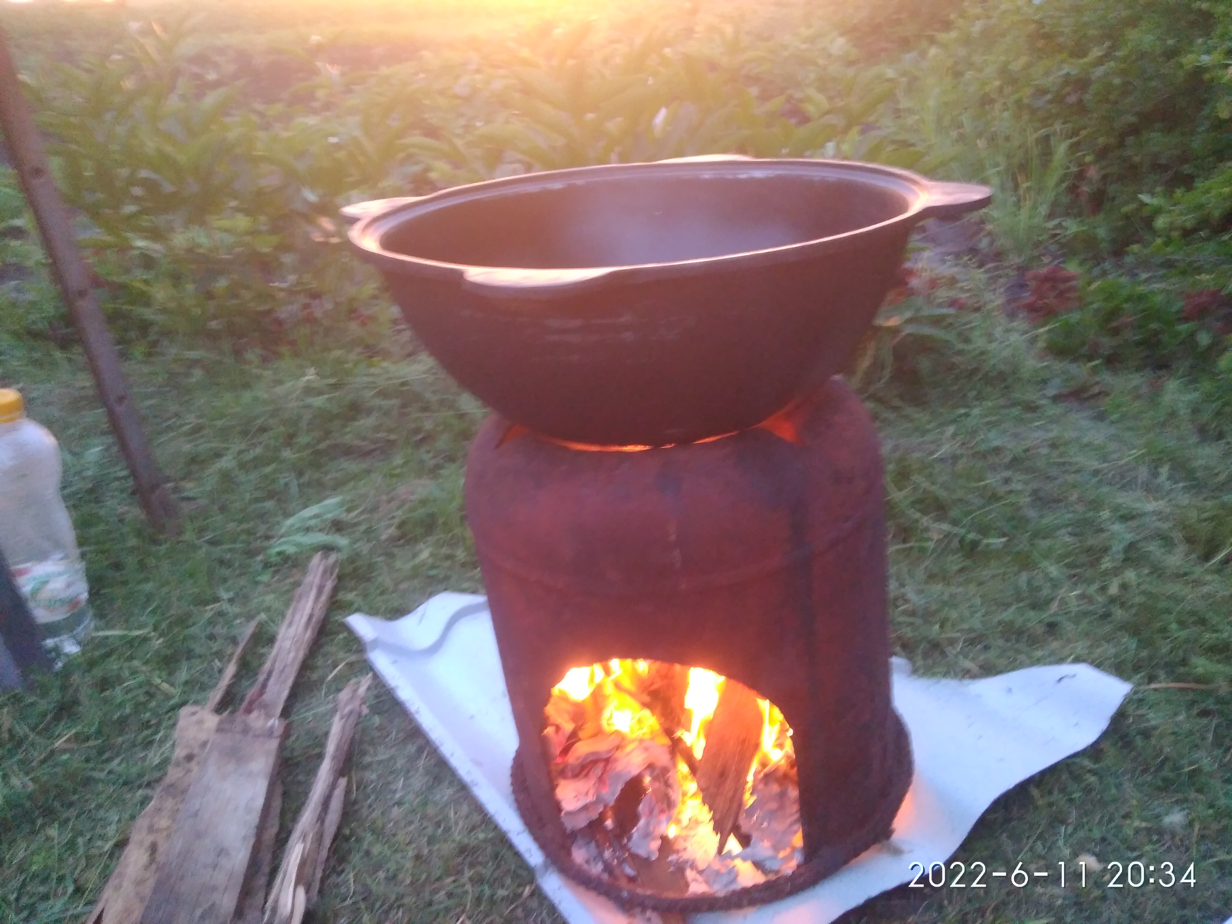 По цвету на фото ощущение, что печка и казан раскалилась докрасна