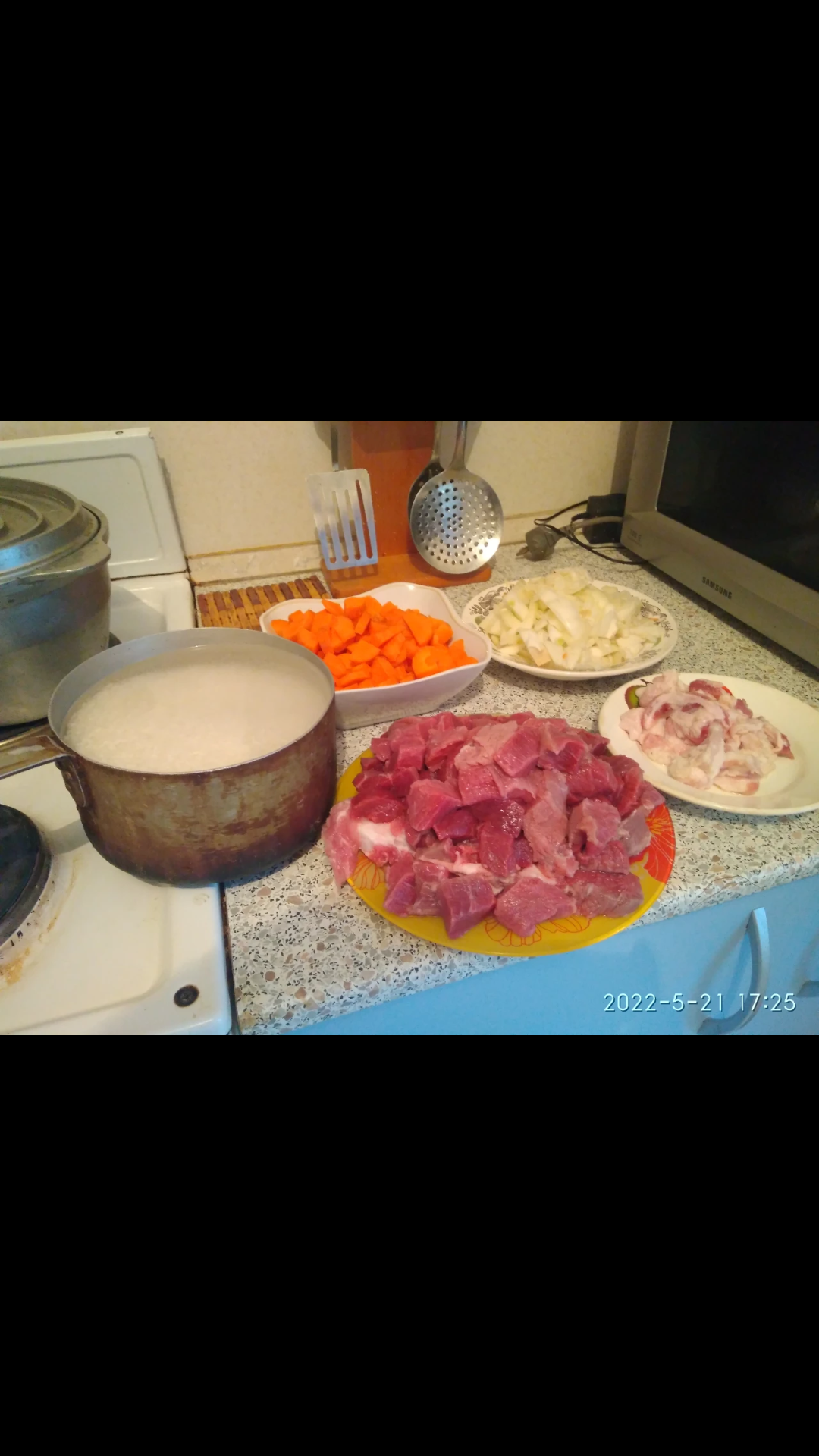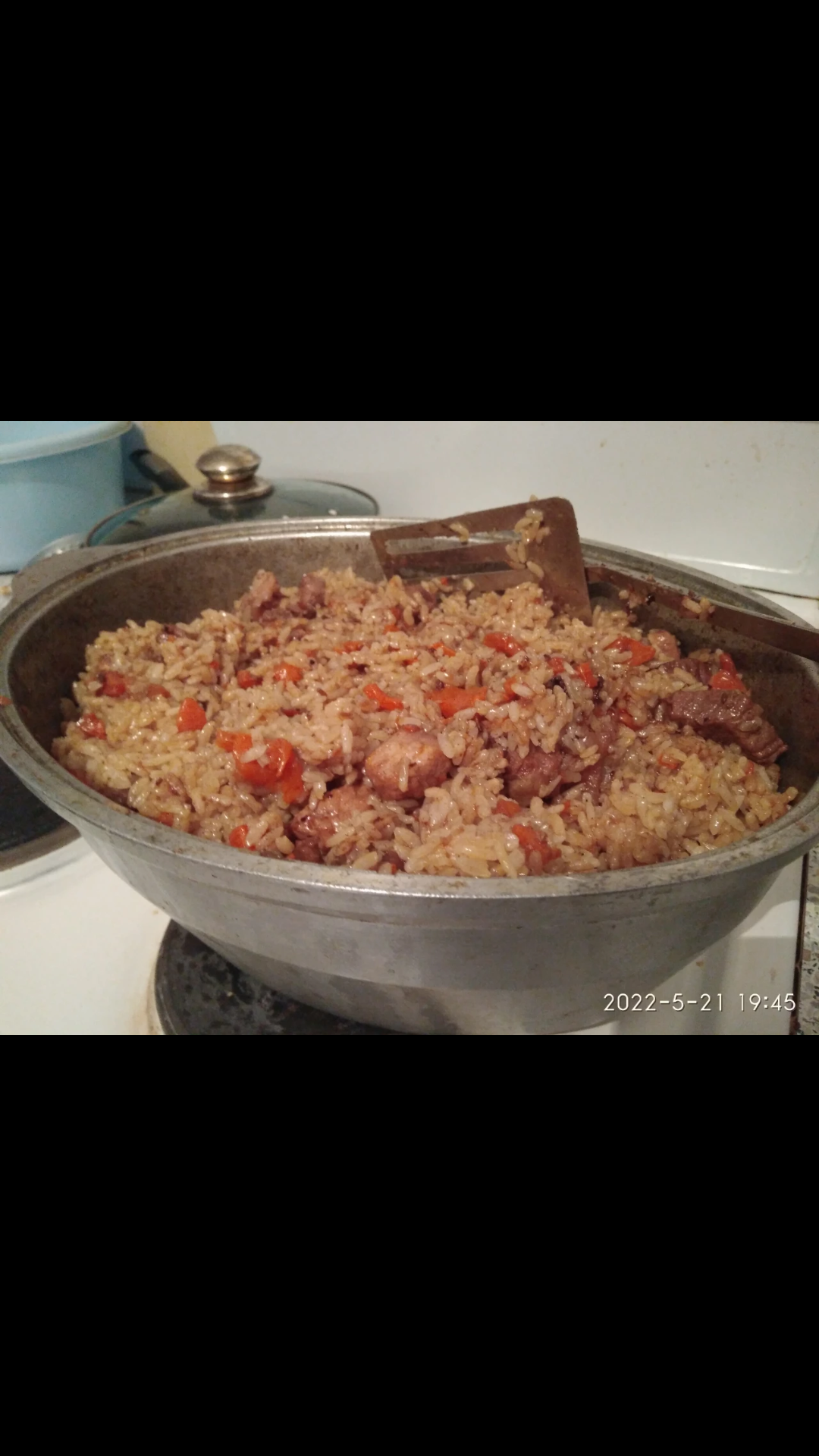 У меня 9 литровый , два мяса , кило риса , морковь полтора , лук кил , подзавяз .....