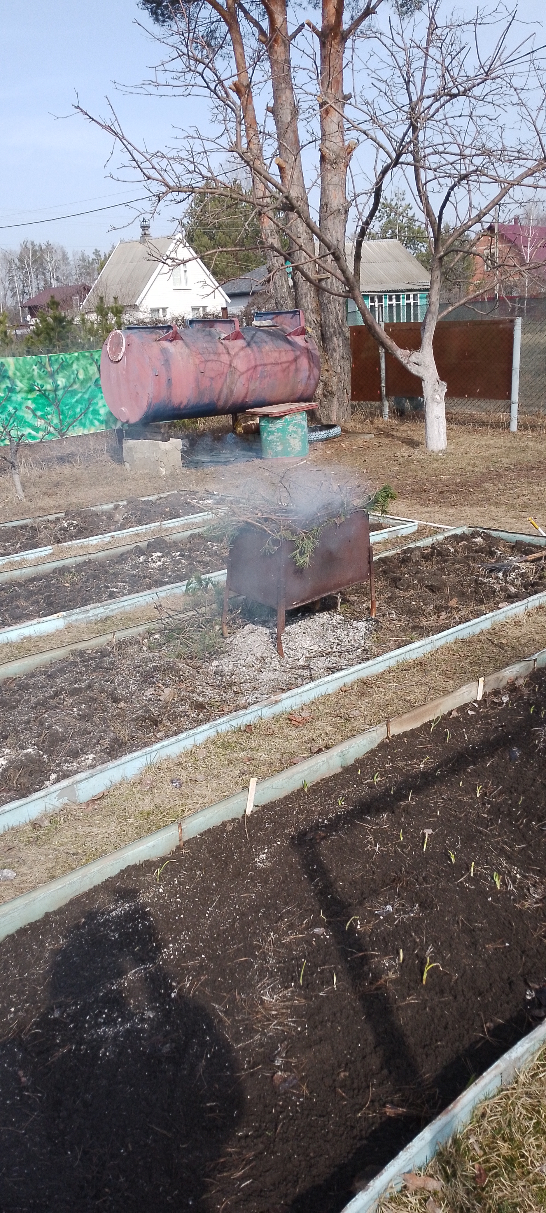Сегодня был на даче. Раскидал остатки снега-в тени от соседского дома. Пожог хвойный лапник, которым виноград укрывал и ветки после осенней обрезки деревьев и винограда, а то не успеешь оглянуться объявят противопожарный режим.