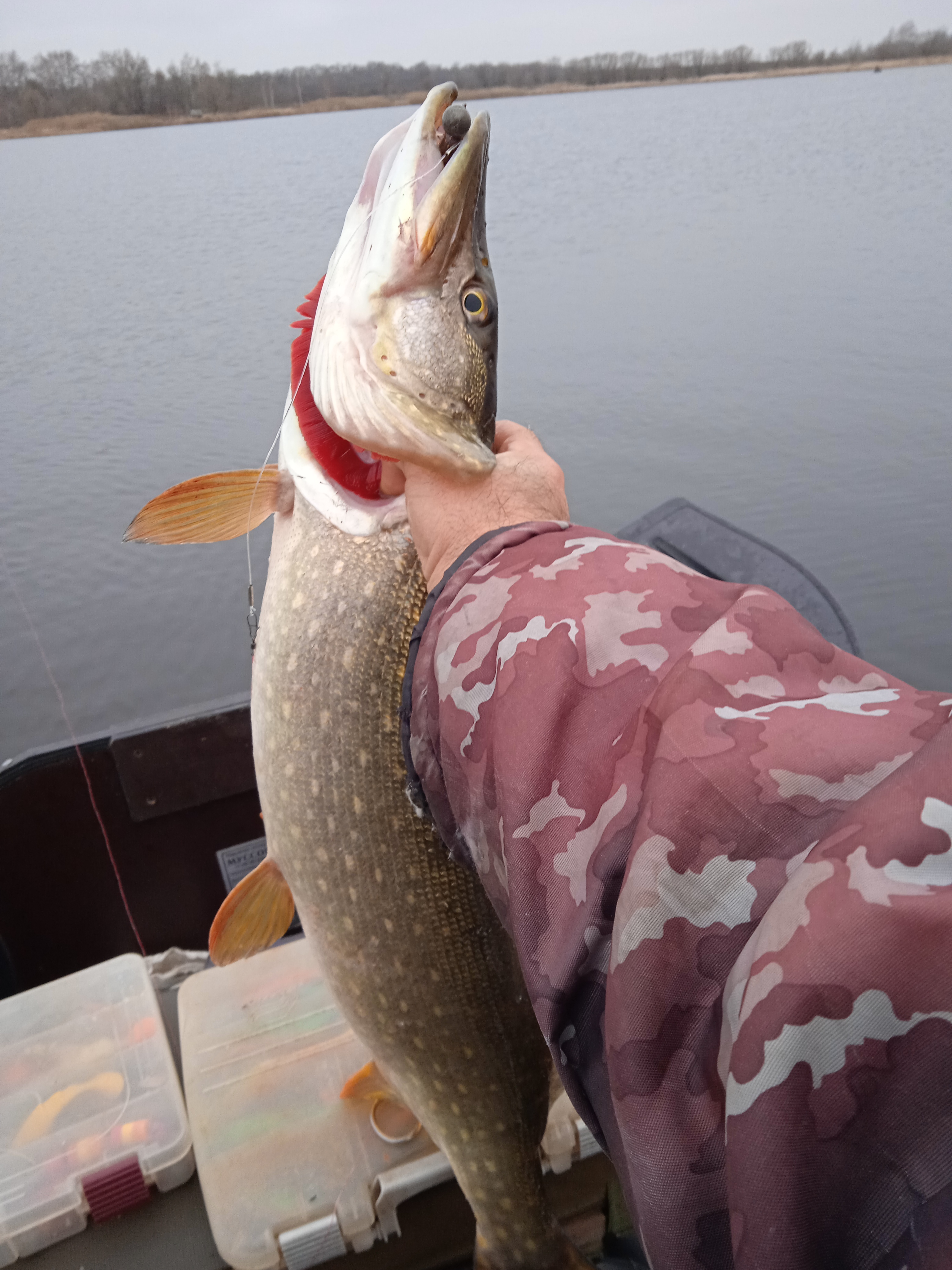 Посмотрев вчера погоду на завтра,решил с уверенностью ,или сейчас или ни когда,закрытие сезона должно быть достойным.Слишком рано ни стал выезжать,в 8 часов прыгаю в маршрутку и известной многим дорогой не спеша пробрасываю рабочие точки.Попутный и не сильный ветерок помогает закинуть воблер по дальше.Кстати ,выдумывать ни чего не стал,начал с проверенных,первой оказалась Asura Rudra от OSP,которая принесла мне ни плохого окуня ,цвет кстати как обычно кислота.Снежок посыпает,я полоскаю Rudrу и слышу всплеск,видел как кто то малька разогнал,перехожу ближе к тому месту и поклевка ни заставила себя долго ждать,забросов через несколько чувствую не большой тычок и телепание на другом конце шнура,я сначала подумал что это мелкий шнурок,но нет ,это был не плохой окунь,ни сказать что я был прям удивлен,просто сколько хожу по усманке окуней ни разу ни ловил.В общем иду дальше,периодически меняю воблера и цвета,погода бомба,на середине маршрута цепляю Megabass Oneten LBO кстати тоже в кислоте ,делаю несколько забросов и контрольный под коряжку,и на тебе,четкий удар,минута борьбы и щука примерно на килошку припаркована,ну там вообще без вариантов,Oneten"чик зашел в самую "топку" ,я дольше воблер вынимал ,чем со щукой боролся.Кстати разловил Mag Squadа от Jackall,трофей был достойный 😂,упирался до последнего,чем и заслужил амнистию,конечно же после фотосессии .В общем к 13 часам ветер усилился снег тоже стал сильнее,я немного ускорился.