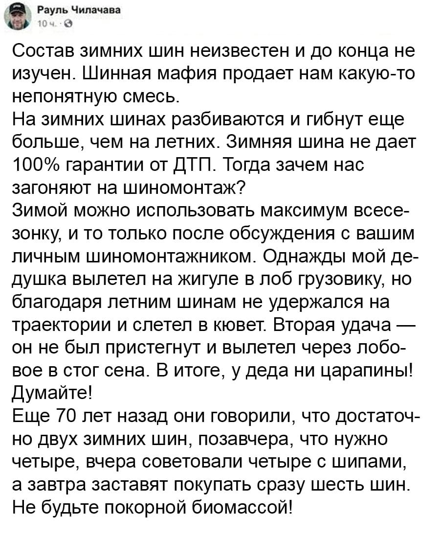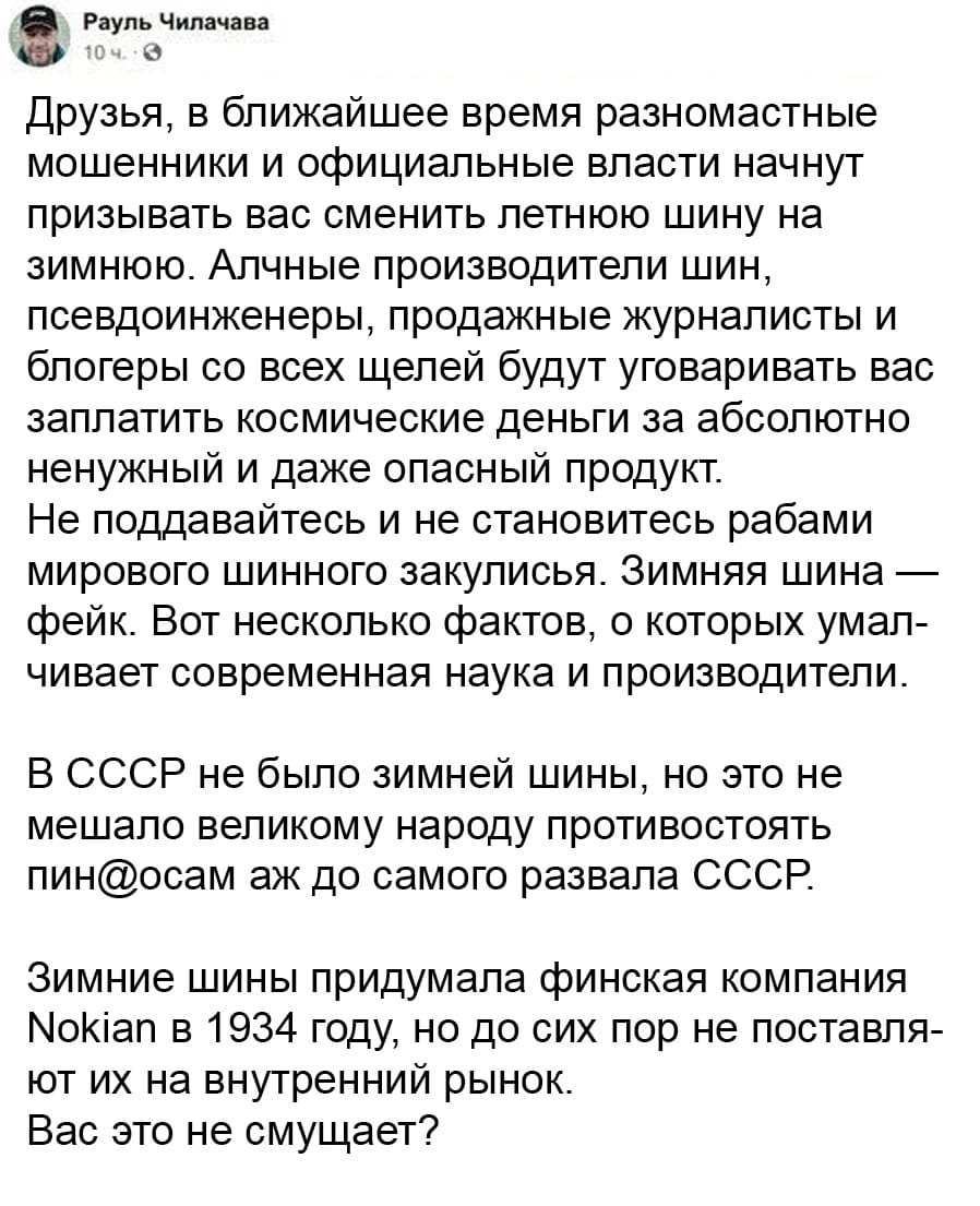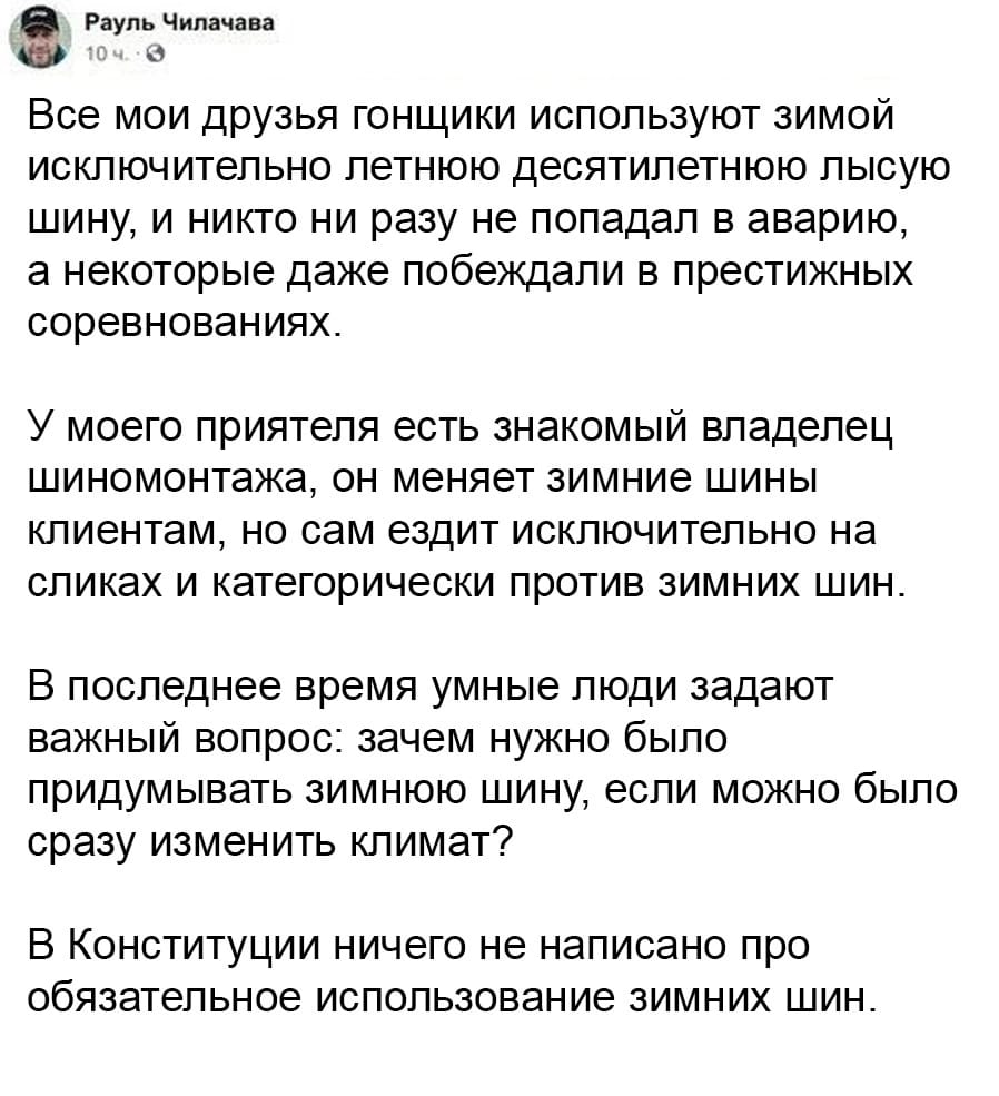 Совсем скоро начнётся пропаганда, (а может даже будут штрафовать), замены летней резины на зимнюю! Держитесь всеми возможными и не возможными способами! Не меняйте резину!!!