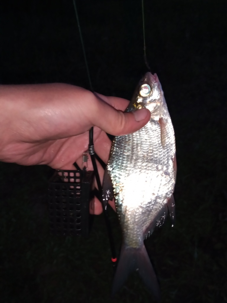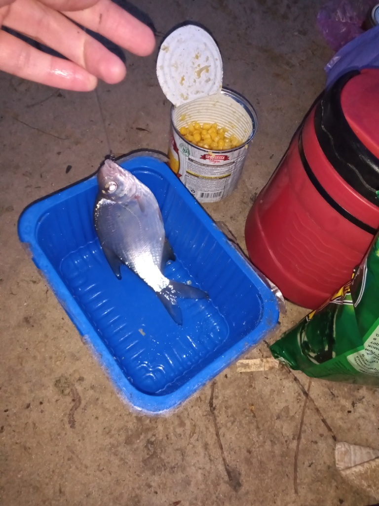 Пока прокопошился, уже и день заканчивался, солнце село за горизонт, ещё час и станет быстро темнеть. Решил поплотнее на ночь покормить точку, минут 20 без передыха швырял кормушки, после чего прицепил поводок с опарышем и непосредственно началась долгожданная рыбалка.