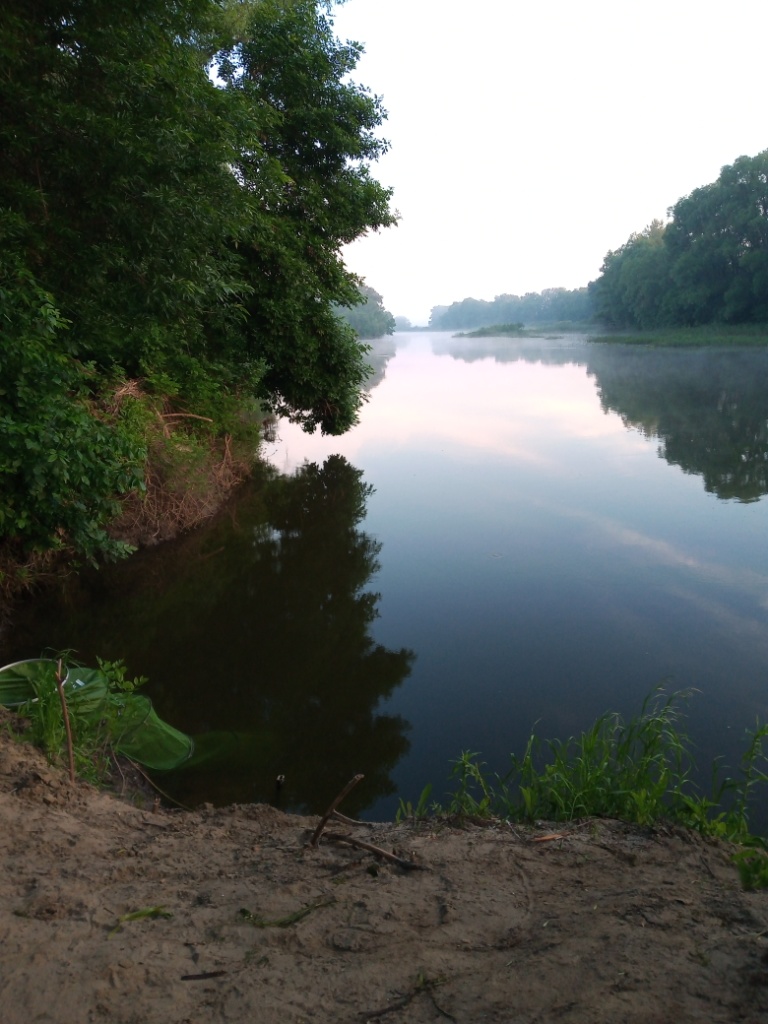 Просидел я почти до часа ночи. Пил чай, жарил на костре сало с хлебом и периодически перезабрасывал фидер, меняя насадку. Поскольку смена насадок ни к чему не привела, то, решил не сидеть без толку, а лучше удалиться на боковую до утра. Поднялся в 4 часа, когда только-только начало рассветать. И тут же угодил в «объятия» моих друзей-комаров. Эти «собаки», похоже, изголодались за ночь и с каким-то особым остервенением набросились на меня всем скопом. Думал унесут вместе с креслом в лес и там растерзают! Просто ужас какой-то! И как на зло – полный штиль… Страдал я от них, наверное, часов до 10, пока не подул, такой долгожданный, ветер.