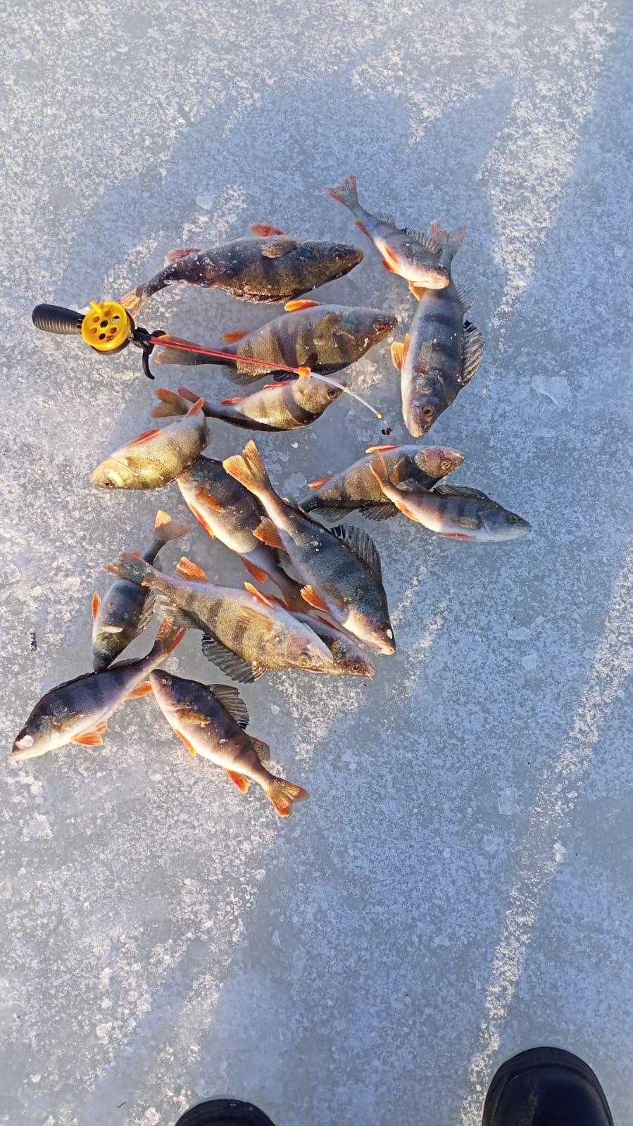Хорошо иметь домики в деревне ! Традиционно приехали отмечать день рождения на Хопре. Рыбалку не планировали , но местный товарищ за тройку рюмок водовки выдал с десяток живцов . Быстро снарядили семь жерлиц и установили около домиков. А сами рванули на затончик с надеждой на окуня. И о чудо дорога была прочищена и после пятидесяти пробуренных лунок окунь нашелся !