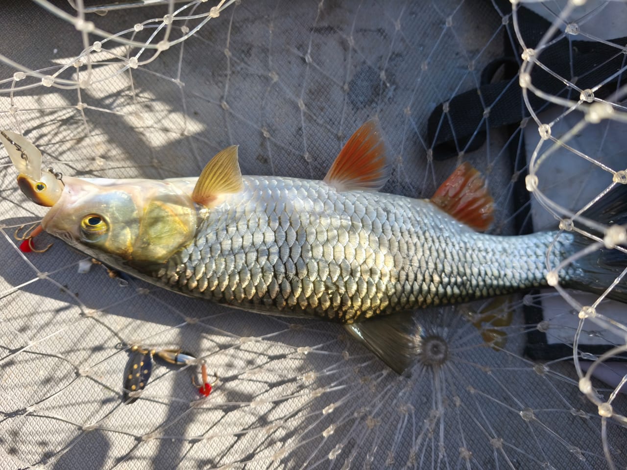 Всем привет! Был на р.Хопер. Ловил только на спиннинг. Находил места по эхолоту, якорился и ловил. Из примечательного нашел место в небольшом коряжничке с хорошим мерным окунем от 400гр++, ну и порадовали поклевки чехони на Риджа 35, поймал пару штук не сильно упираясь в нее). Поклевки хоть и редкие, радовали, получили массу удовольствия! Основной моей задачей было изучение своего места по глубинам, купил новый эхолот, короче изучал, занимался. Проскакивали злые щучки. На этом все.